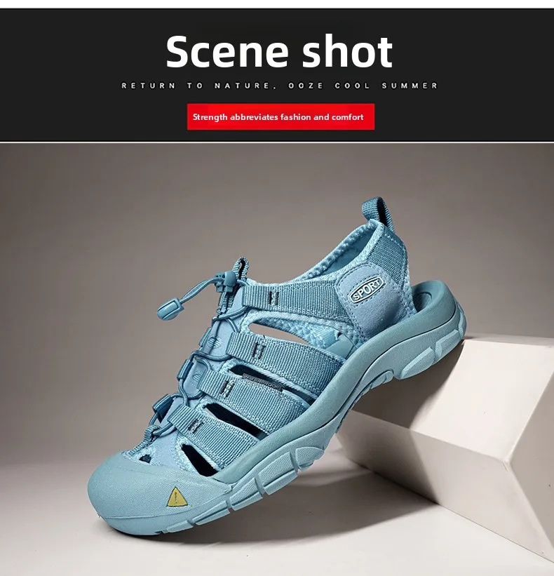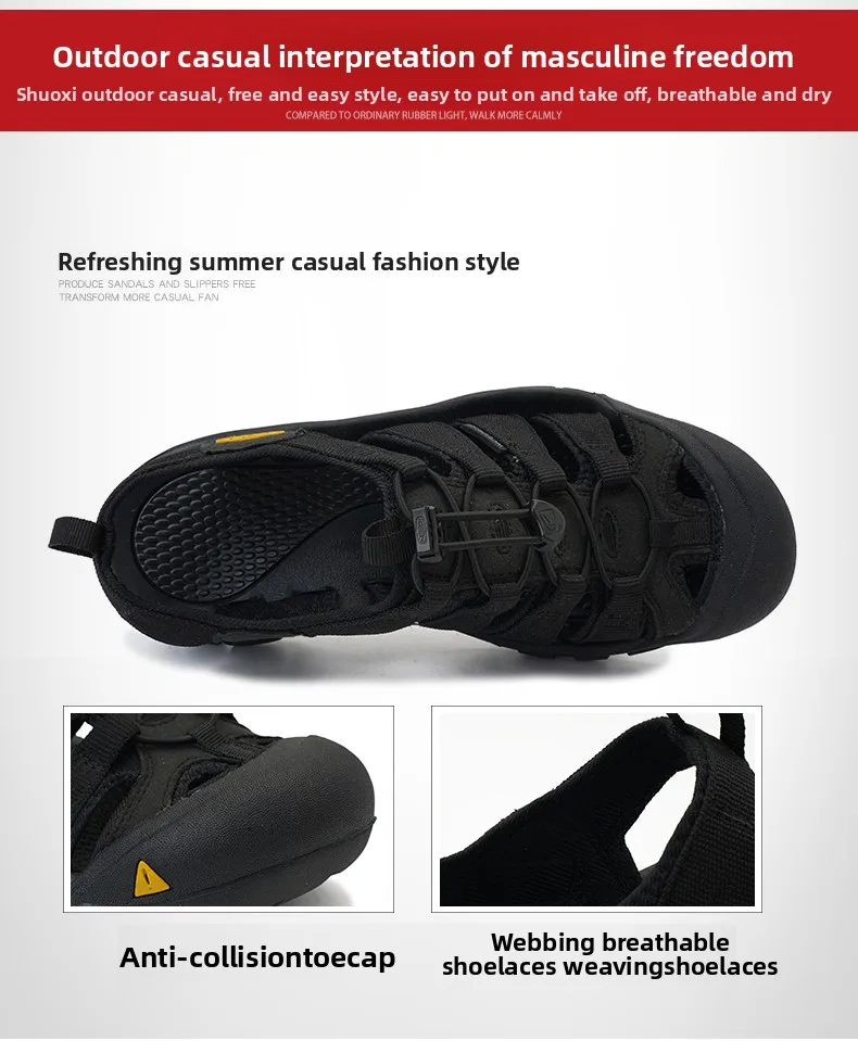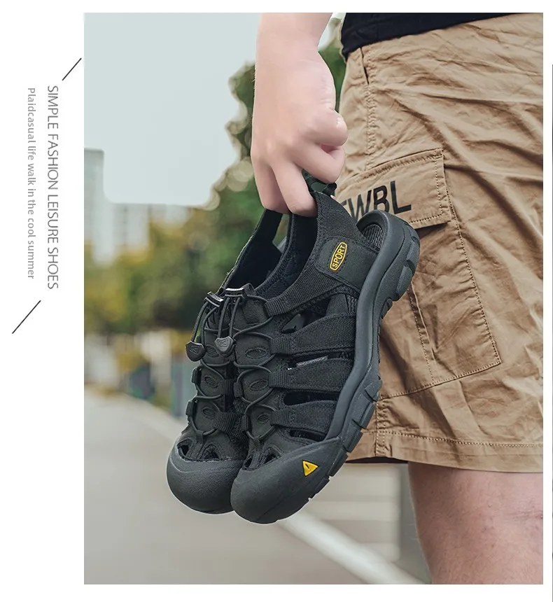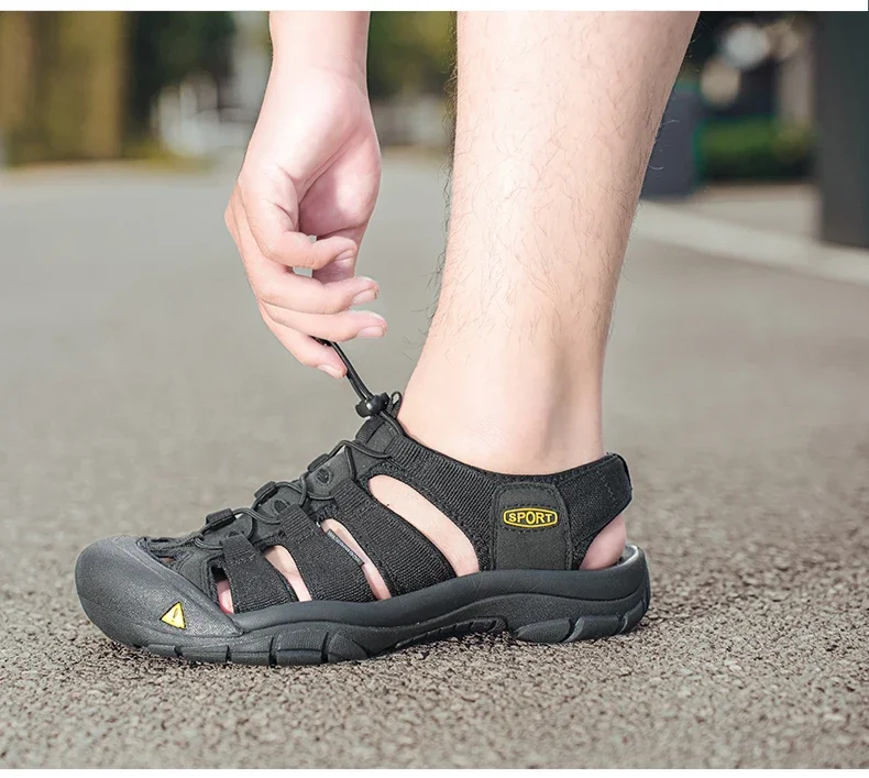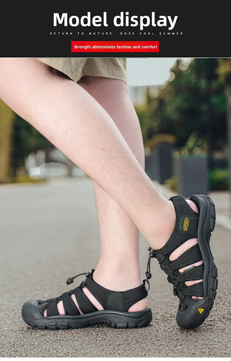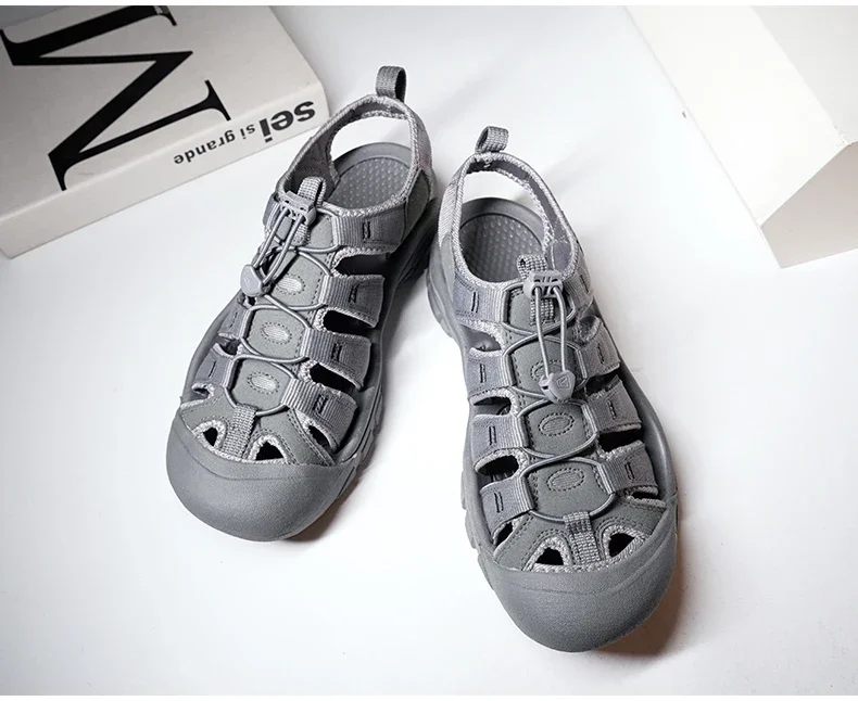 2025 Summer Men's Sandals Thick soled Baotou beach shoes Outdoor oversized casual Shoes Male lightweight hollow sandals Homme