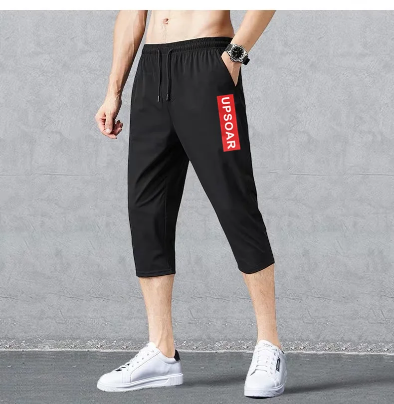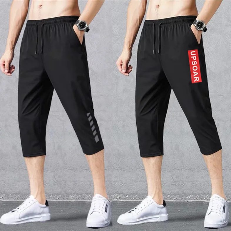 2025 Summer Men's Shorts Breathable Stretched Nylon Ice Silk 3/4 Short Capris Pants Sports Breeches Plus Size Casual Shorts Male