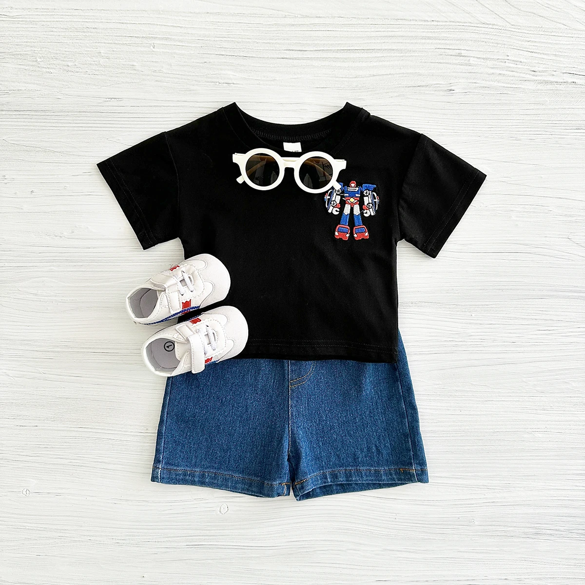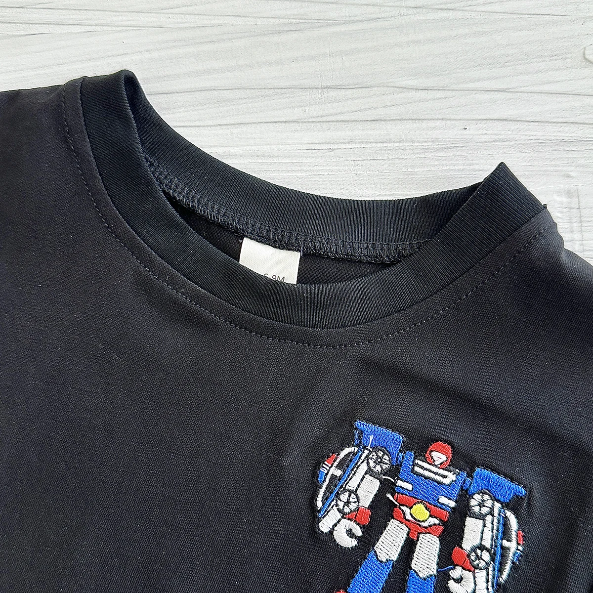 2025 Summer New Baby Clothes Infant Robot Embroidery Top+Bottom Set Baby Boys Girls Casual Baby Set Newborn Baby Clothes 2Pcs