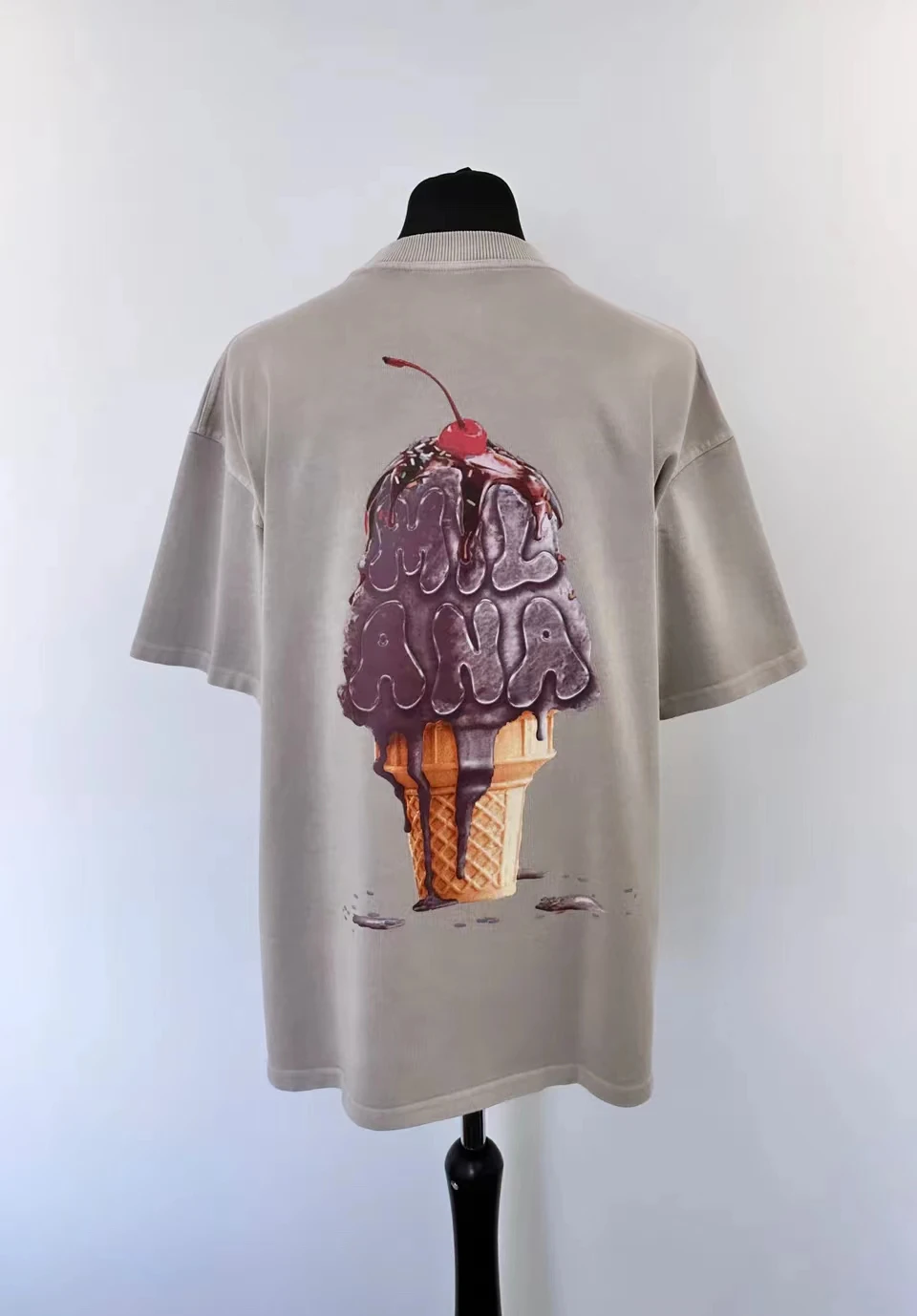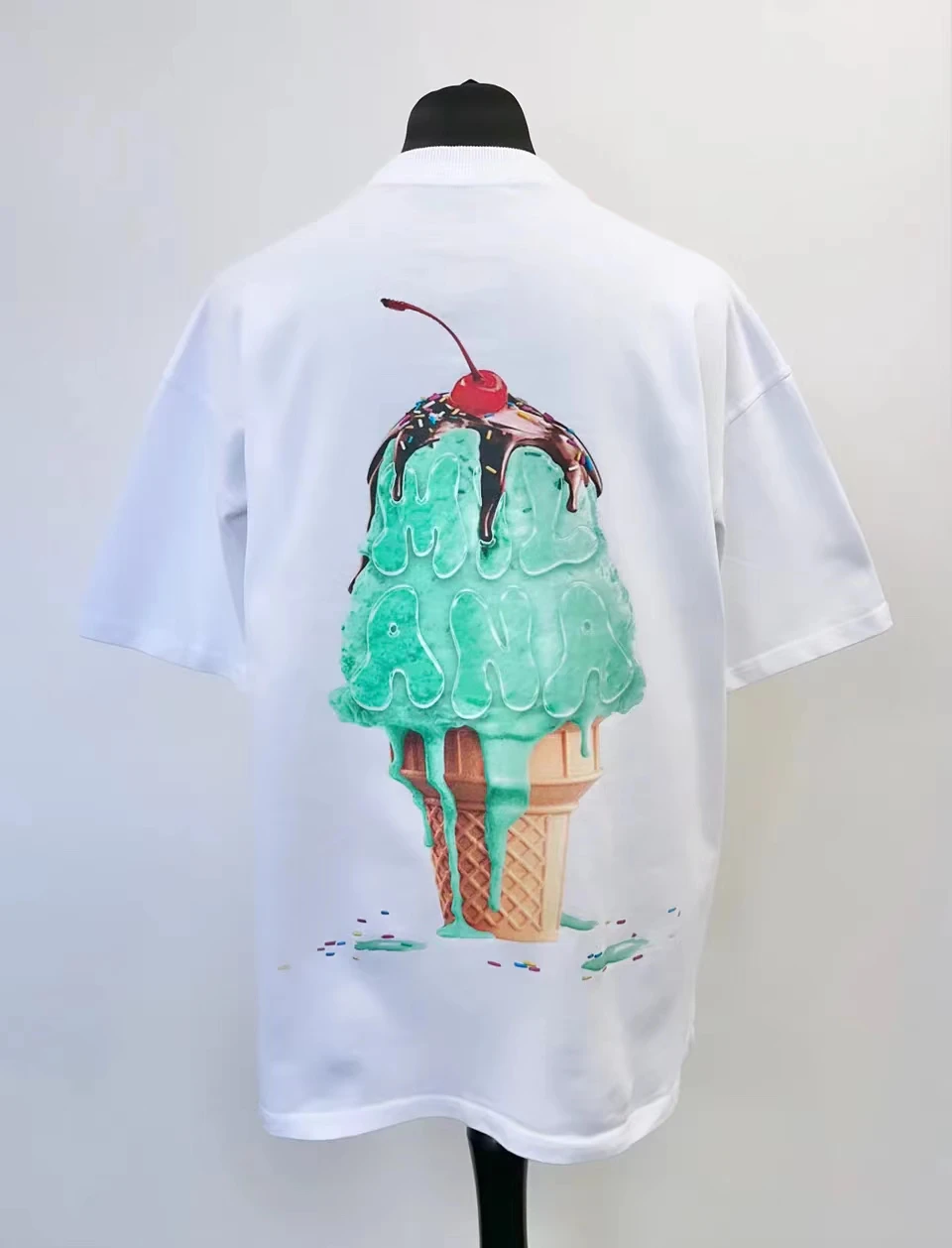 2025 summer new Harajuku street style ice cream print short sleeve cotton T-shirt men Y2k top Gothic style loose couple shirt