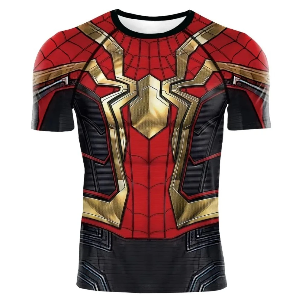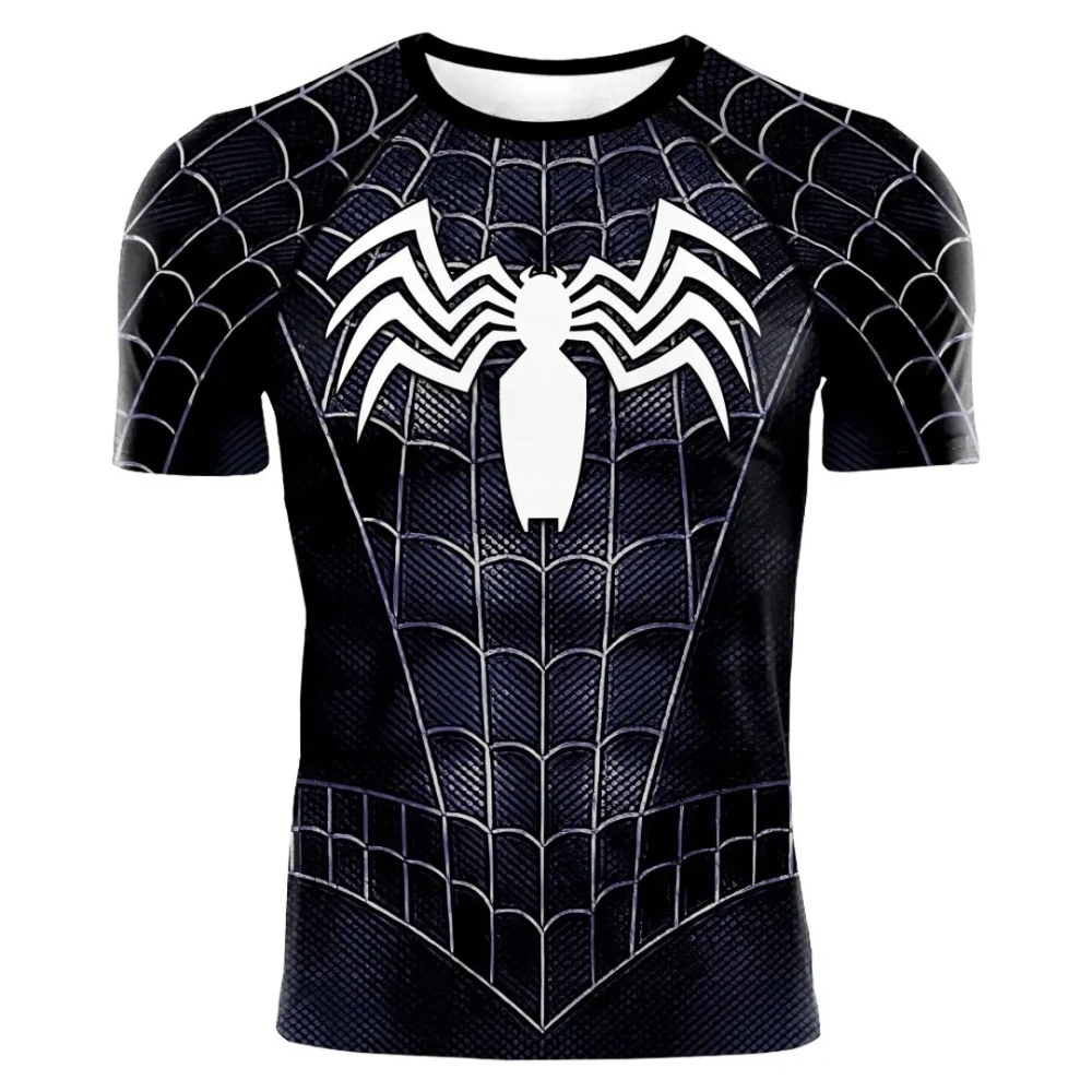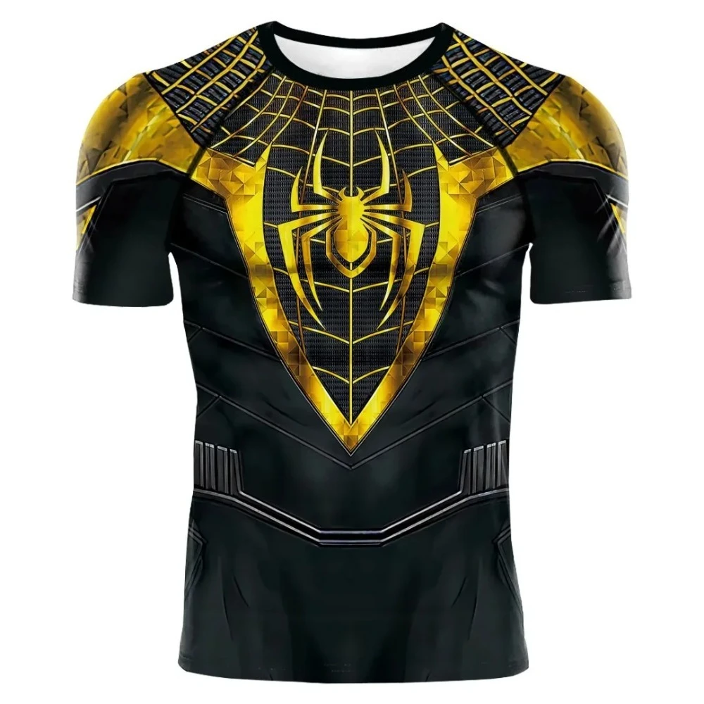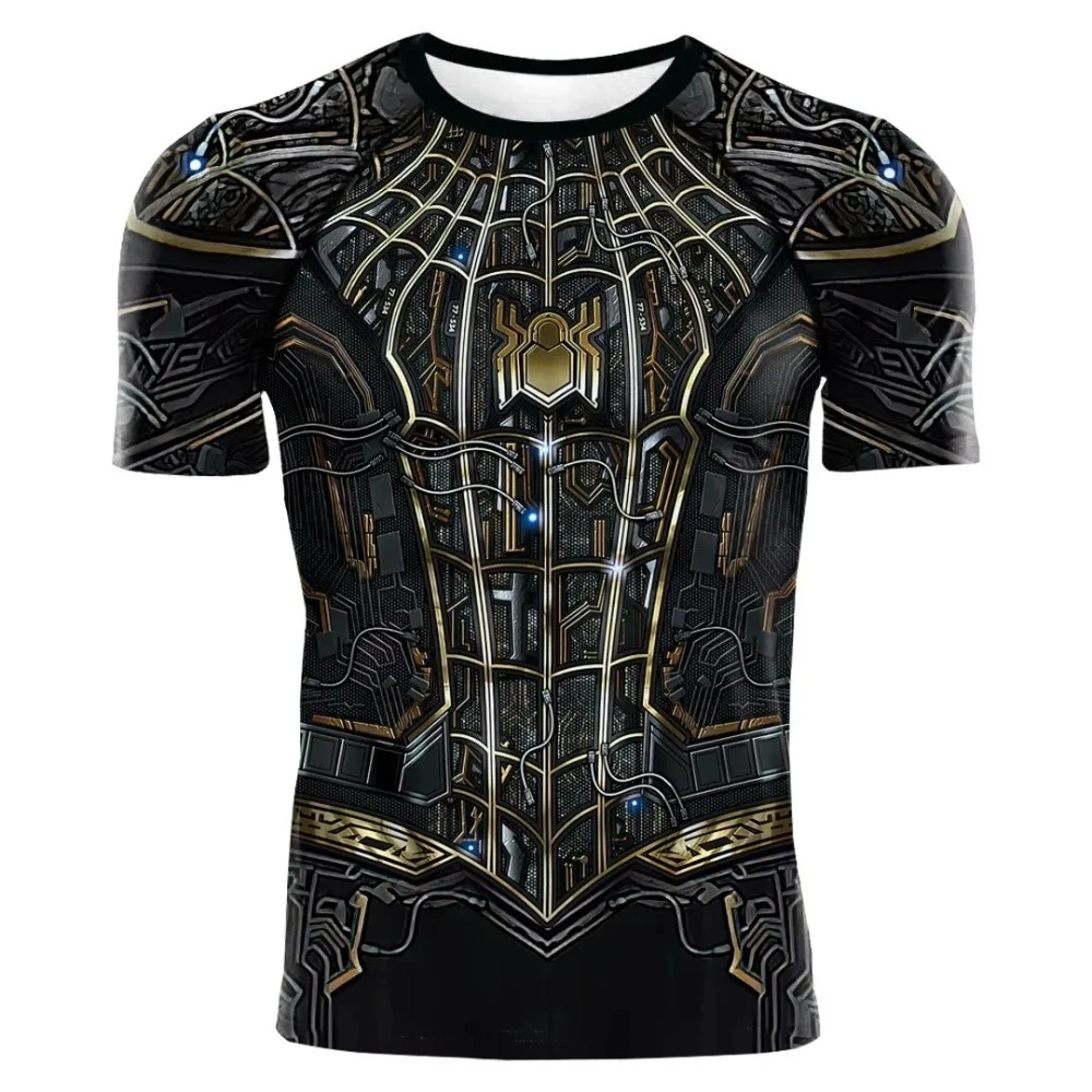 2025 summer new men's compression T-shirt Spider role play short sleeve T-shirt elastic superhero top fitness activewear