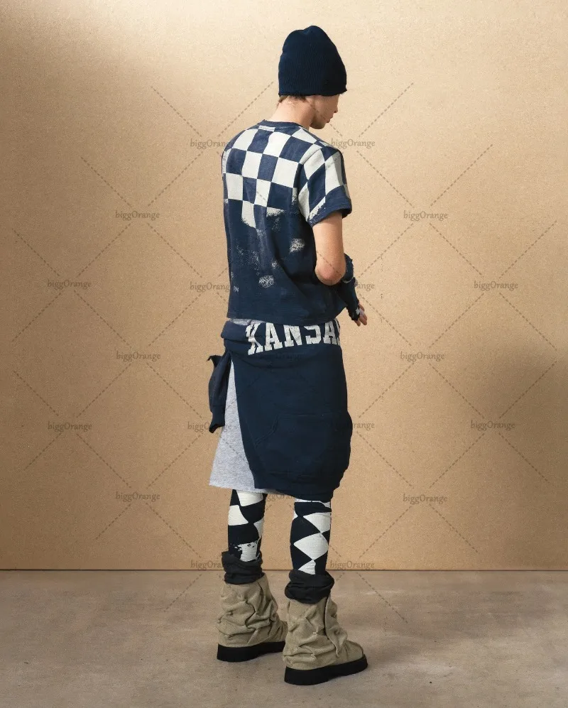 2025 Trendy Brand Streetwear Y2K Harajuku Retro Plaid Graphic Tops Men High Street Punk Casual Loose Oversized T-shirts Women