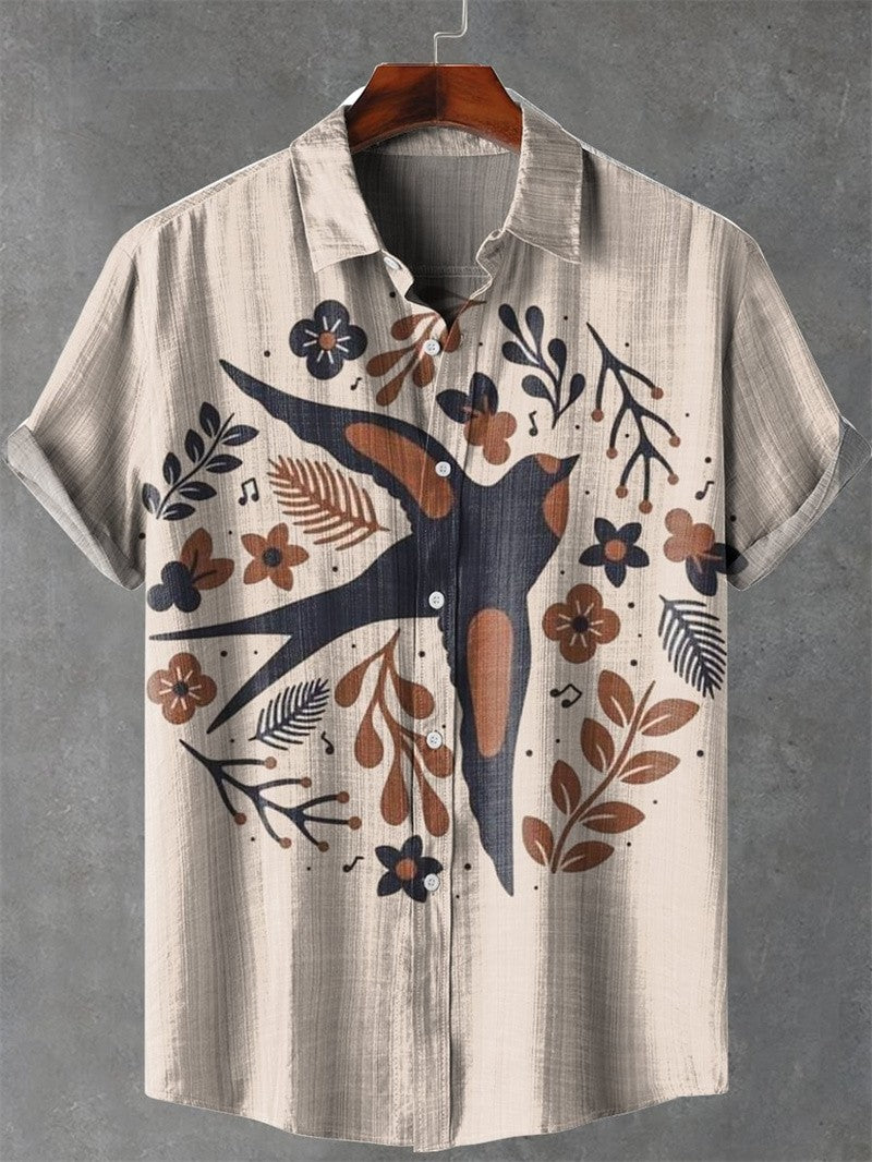 2025 tropical jungle print lapel casual Hawaiian shirt print style short sleeved casual shirt for men