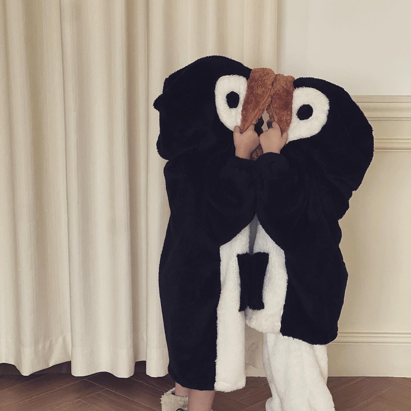 2025 Winter Infants Toddlers Pajamas Set Penguin Style Children's Warm Thicken Flannel Sleepwear Soft Loose 2 Pcs Suit Plush Pjs