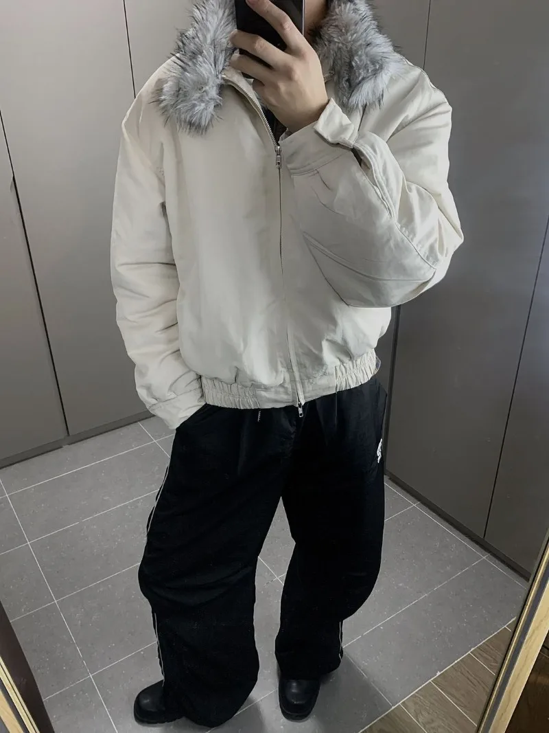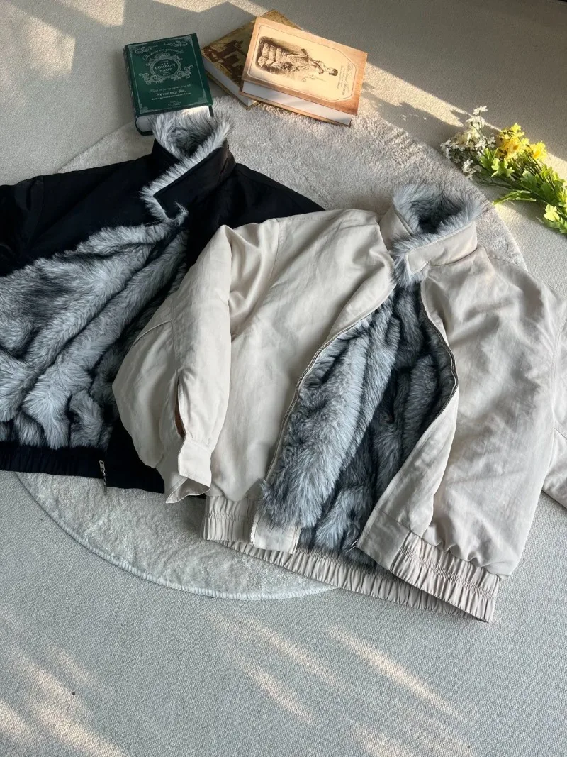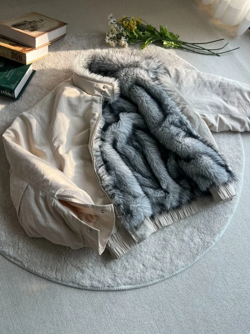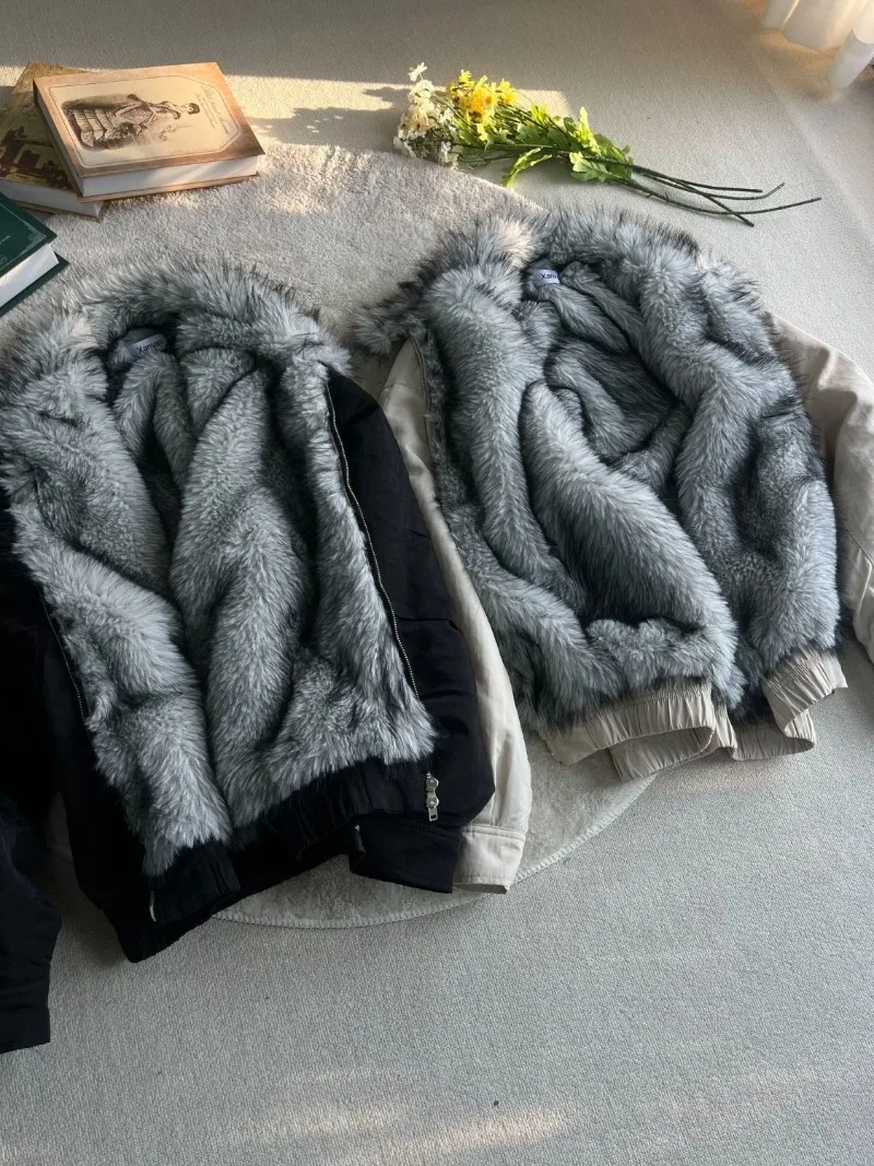 2025 Winter New Fashion Mountain Carving Imitation Wolf Fur Coat Men and Women Y2K Harajuku Hip-hop Pop Bomber Jacket Cleanfit