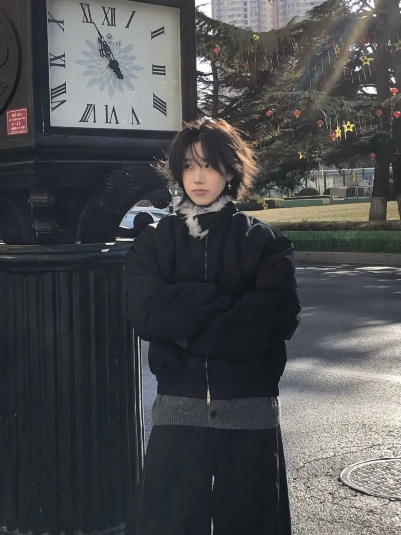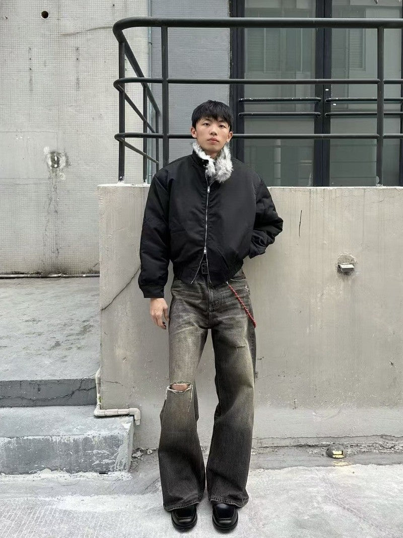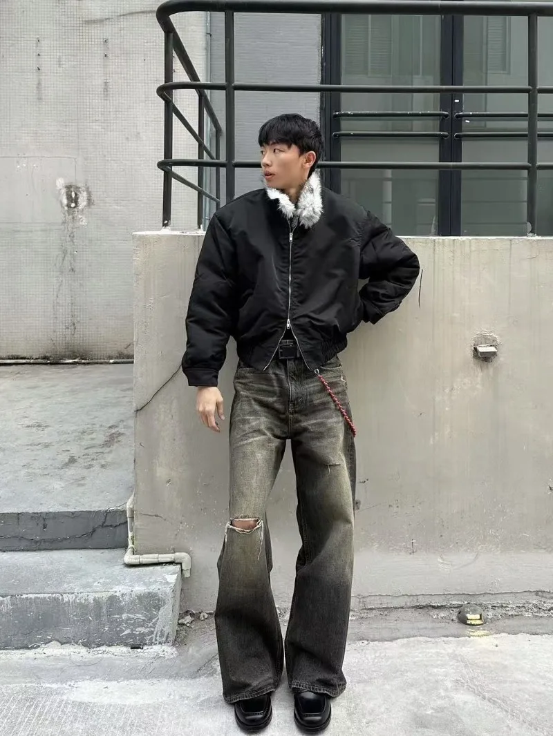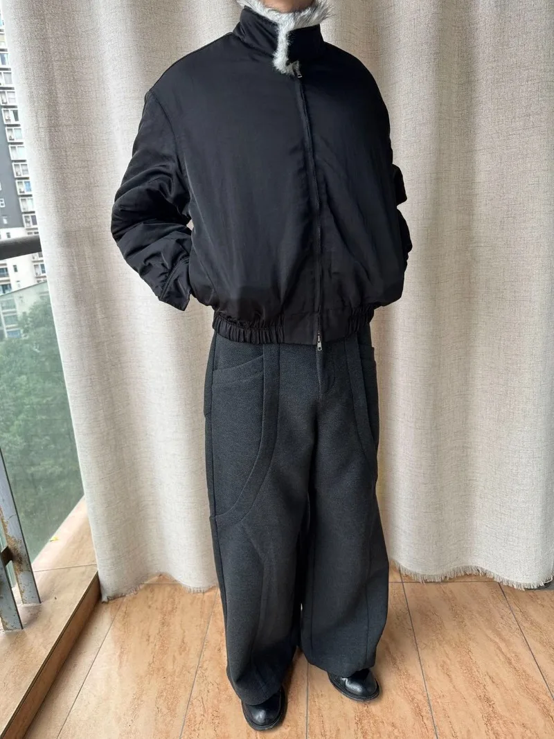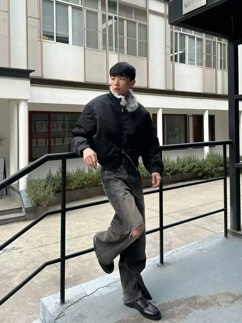 2025 Winter New Fashion Mountain Carving Imitation Wolf Fur Coat Men and Women Y2K Harajuku Hip-hop Pop Bomber Jacket Cleanfit