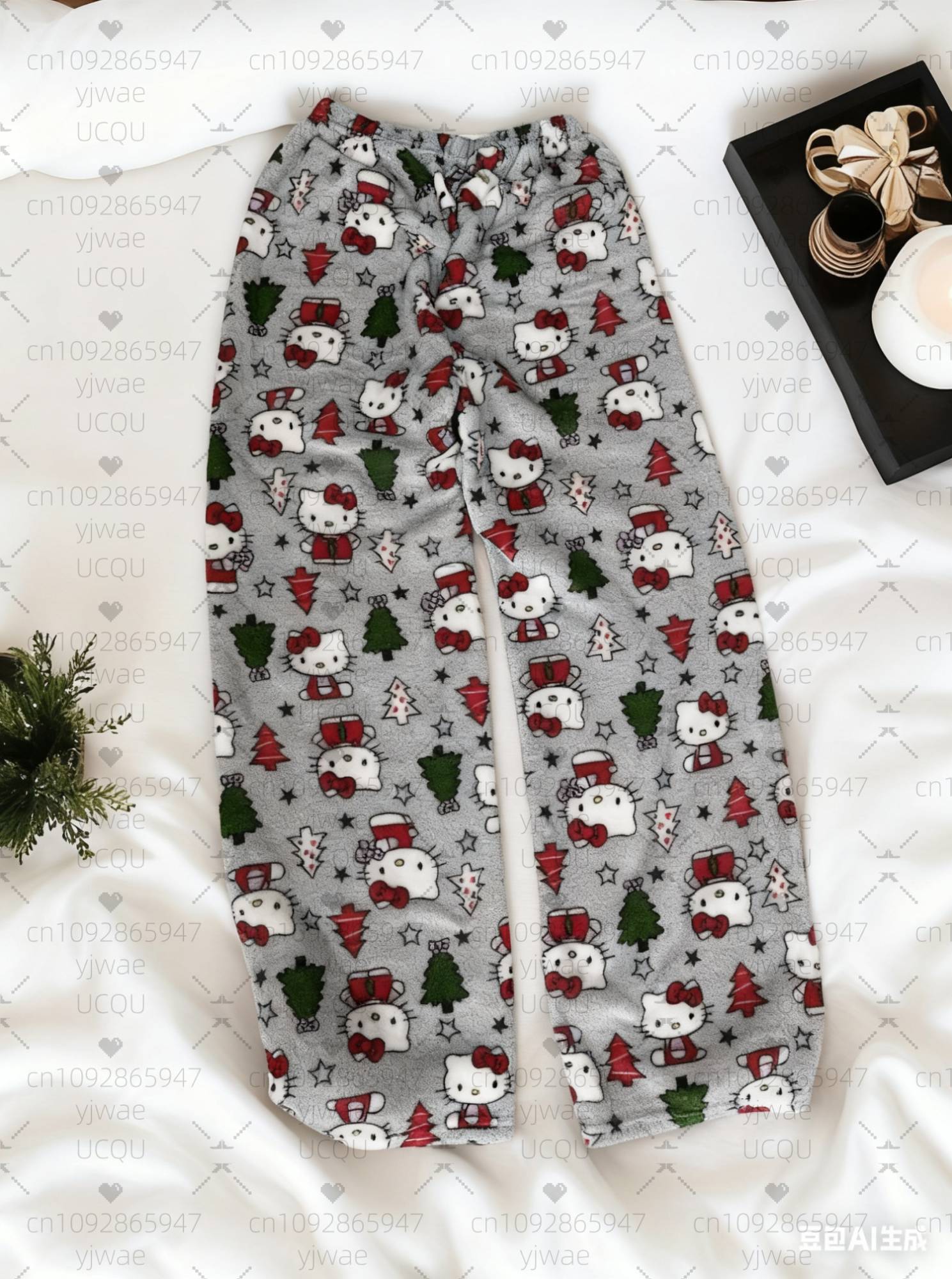 2025 Winter Women Hello Kitty Christmas Tree plush Pajama Pants Soft Trousers Cute Women Casual Home Anime Cartoon Pajama Pants