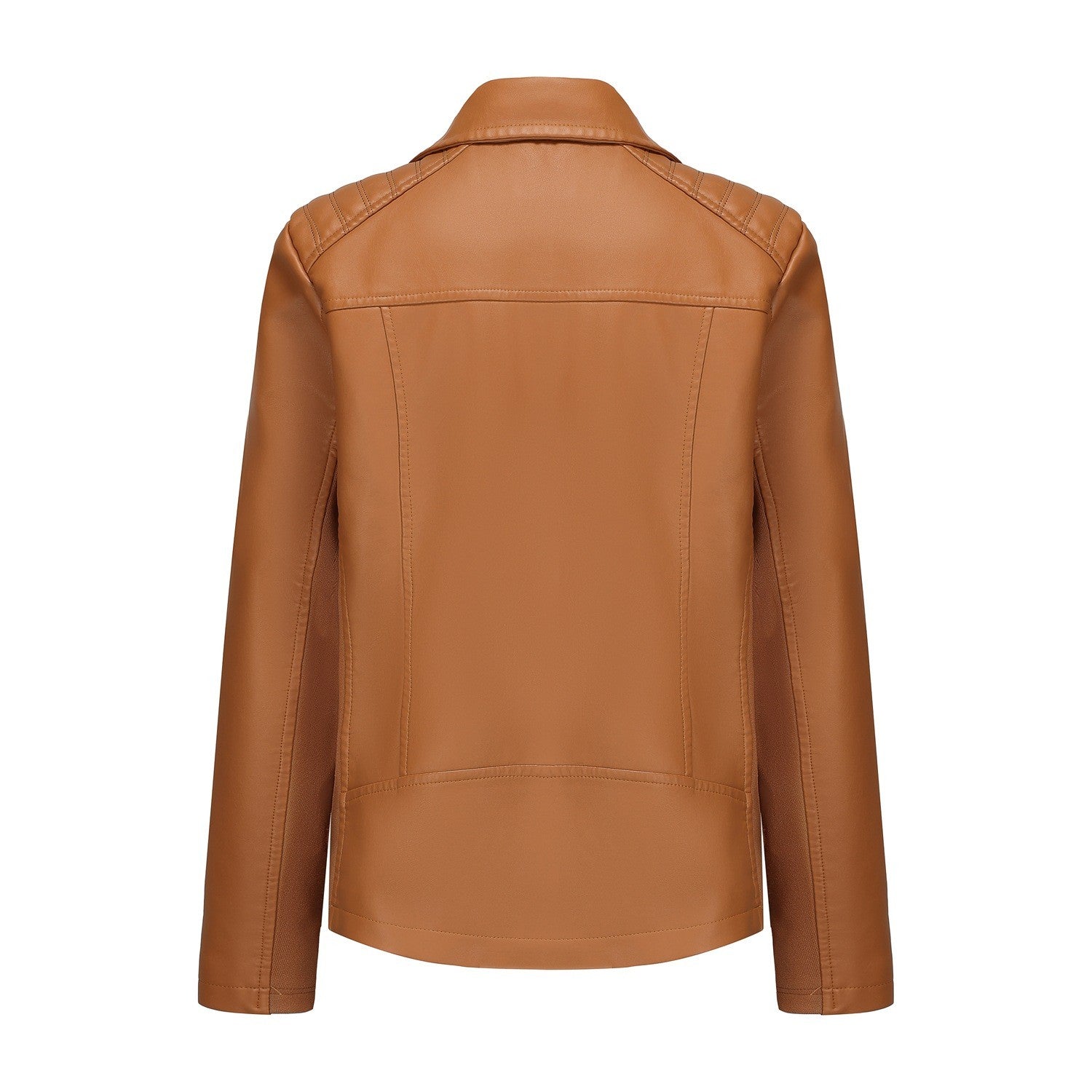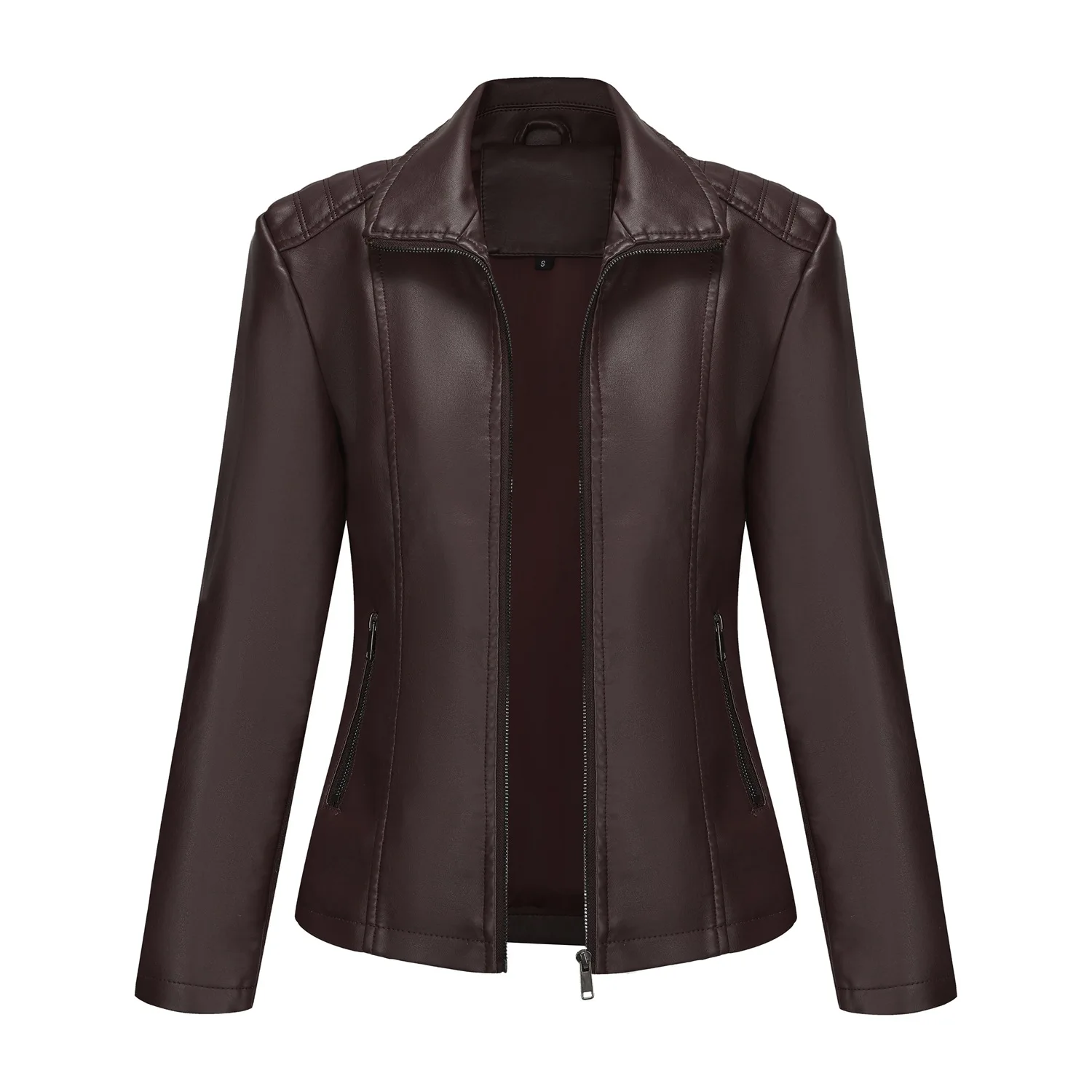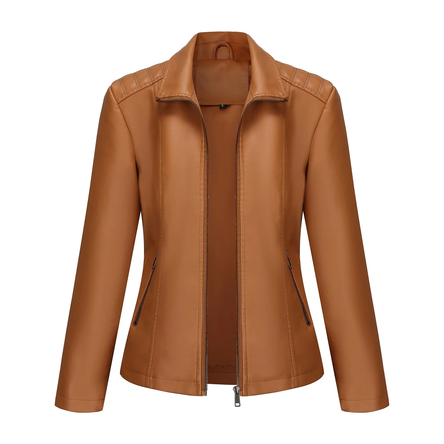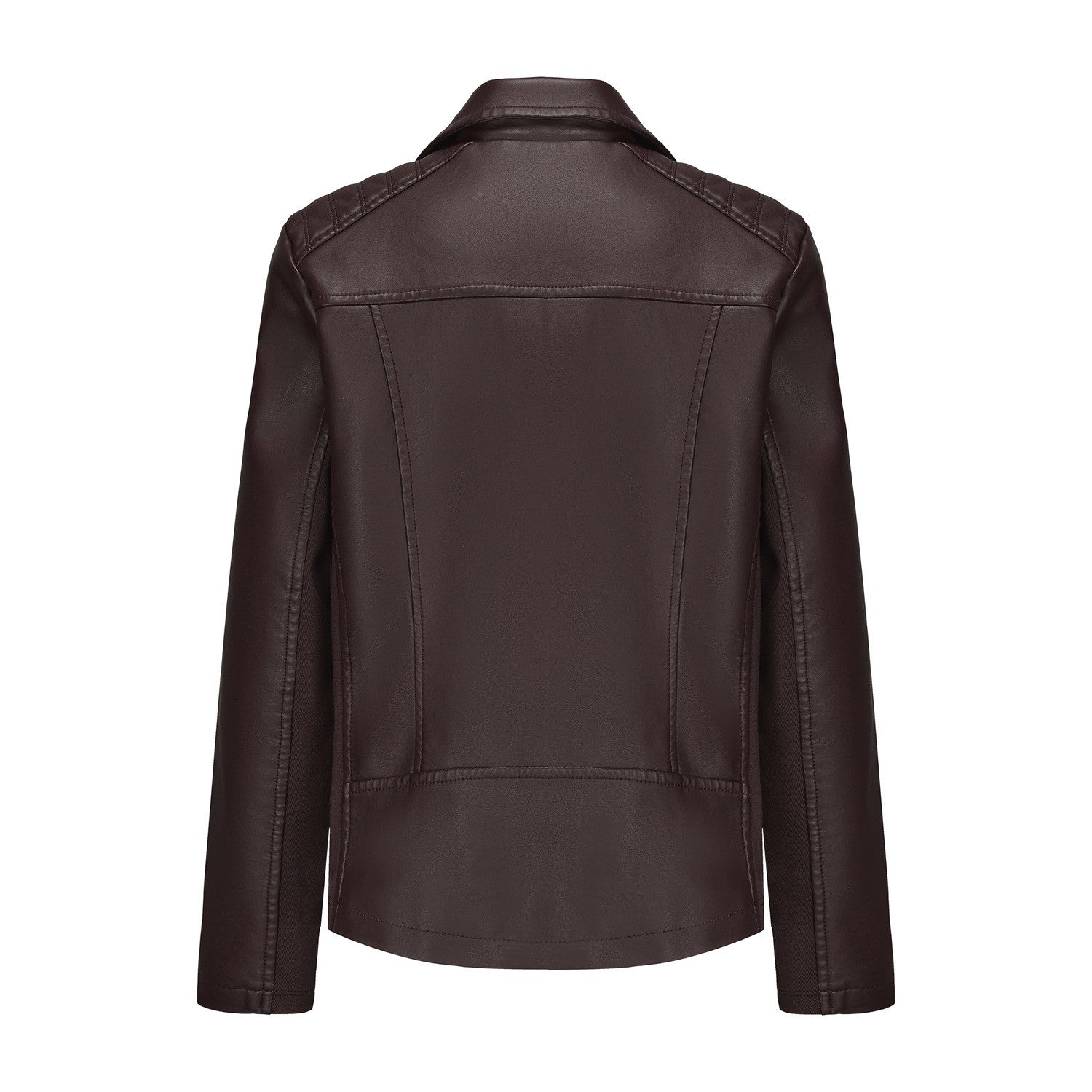 2025 Women’s Stylish Brown Faux Leather Jacket - Slim Fit, Trendy Moto Style with Zipper Detail PU Coat.
