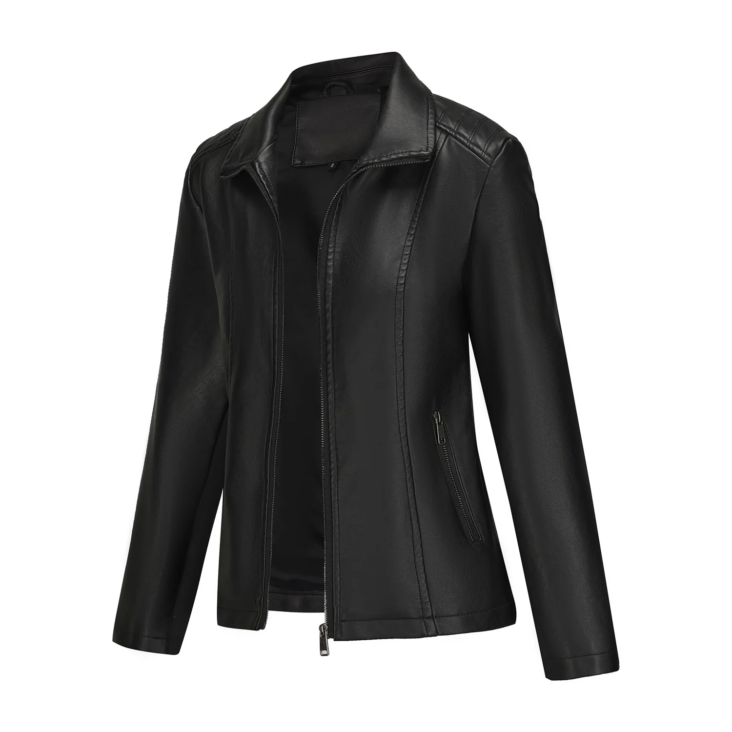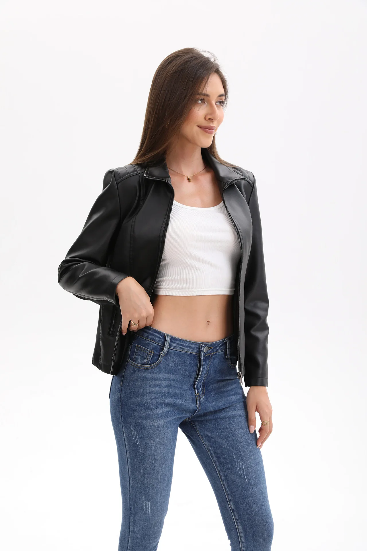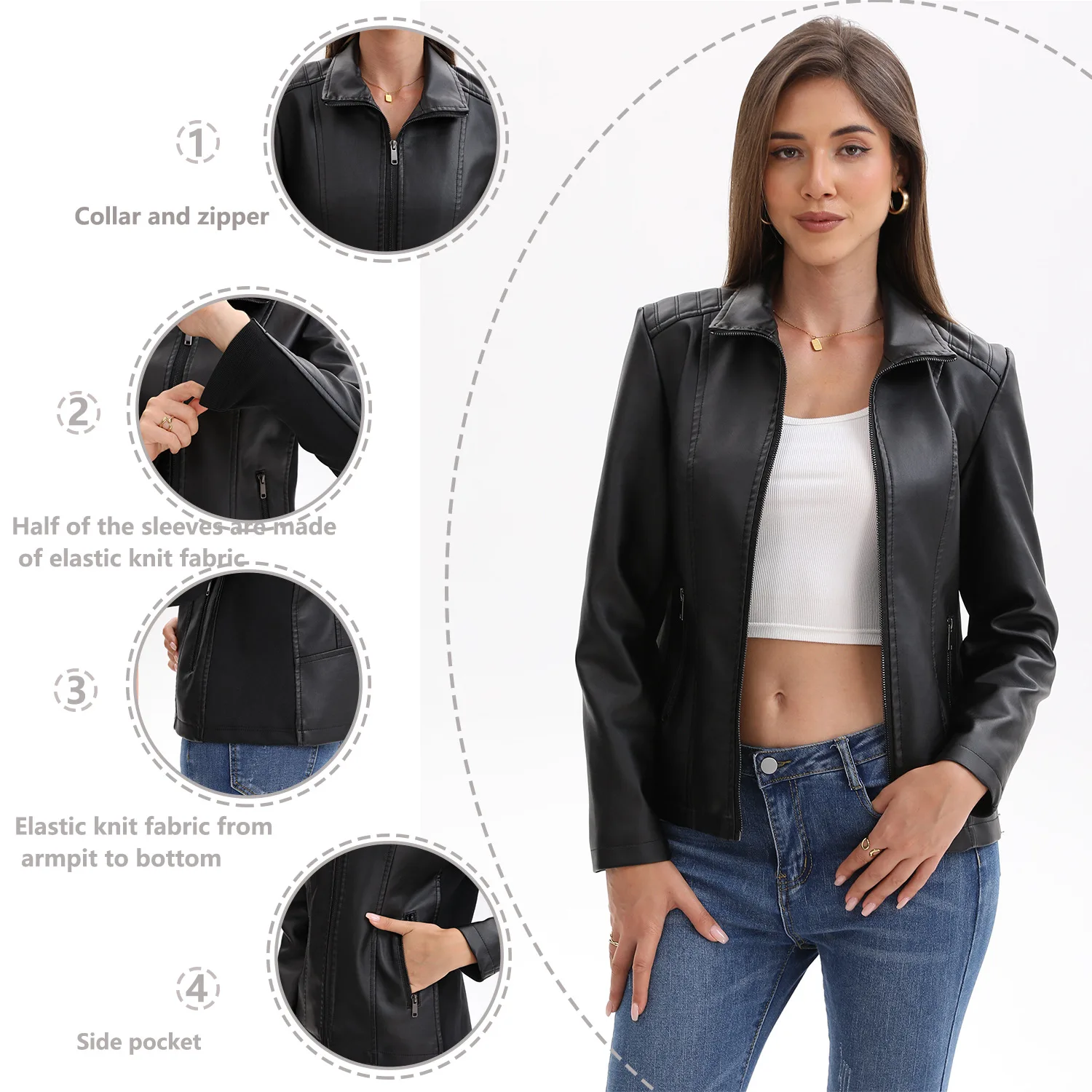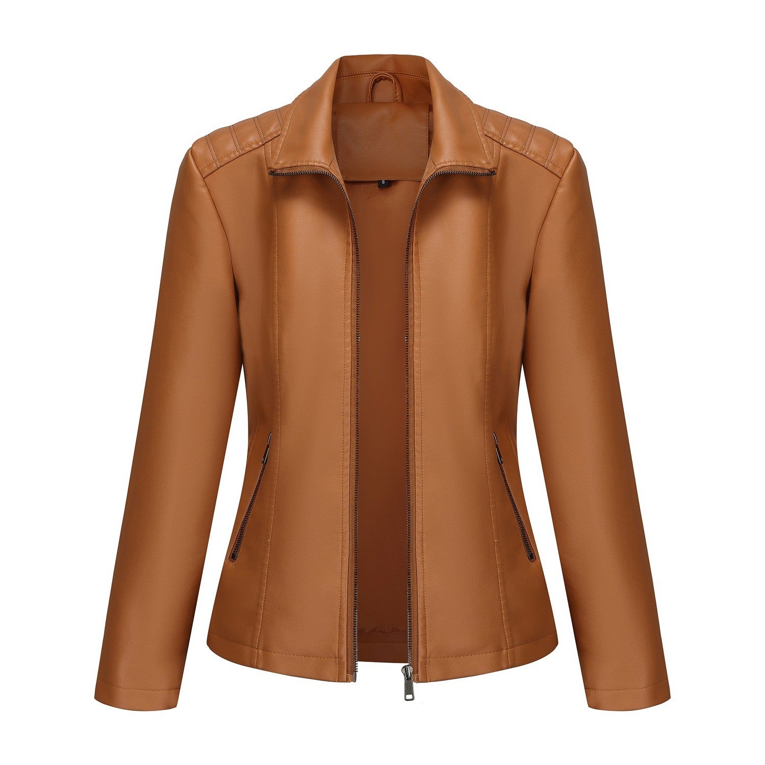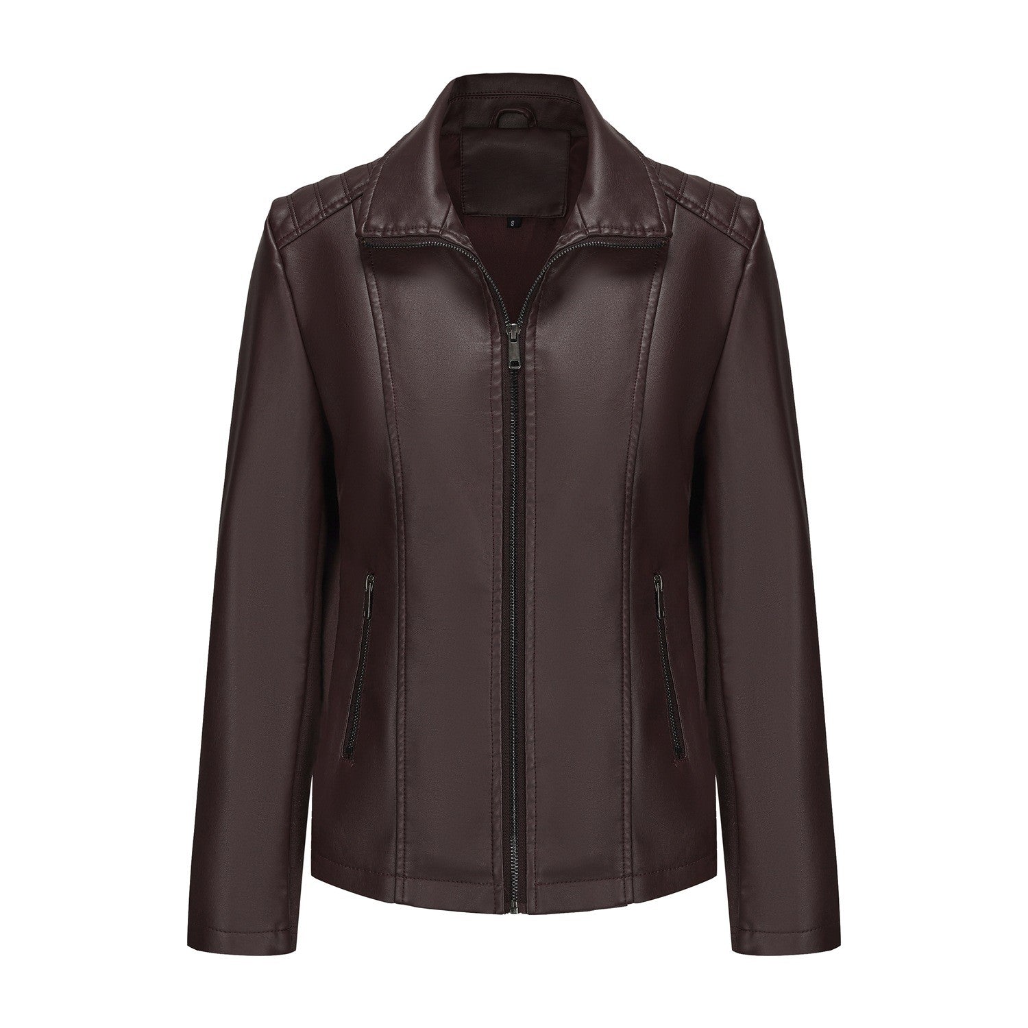 2025 Women’s Stylish Brown Faux Leather Jacket - Slim Fit, Trendy Moto Style with Zipper Detail PU Coat.