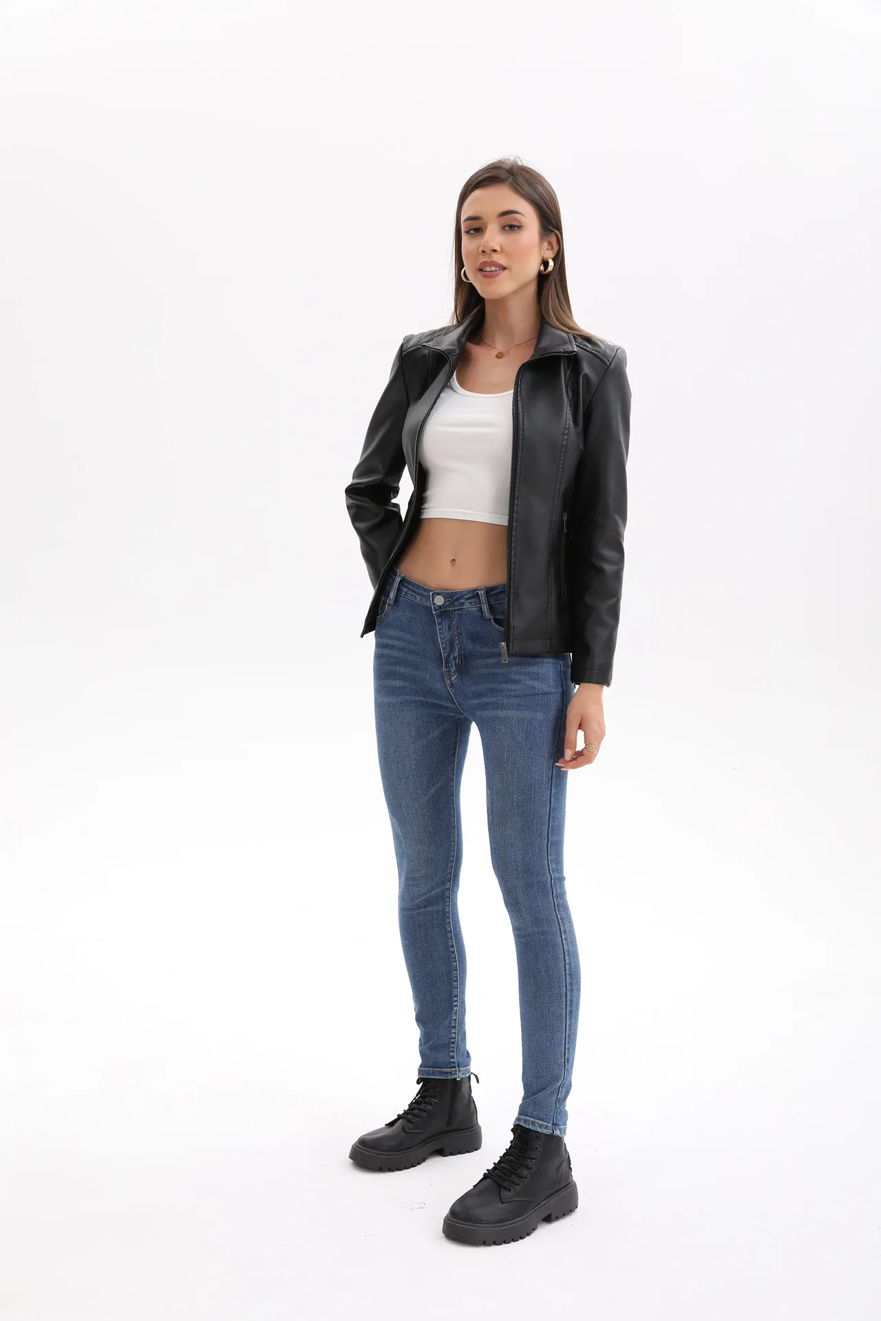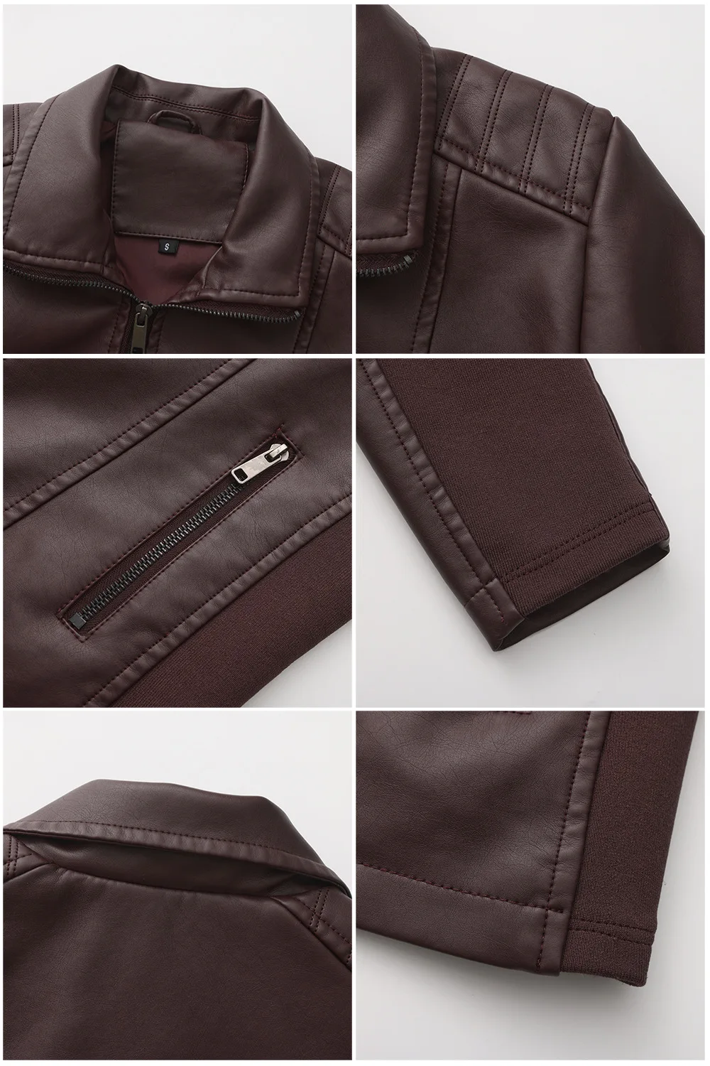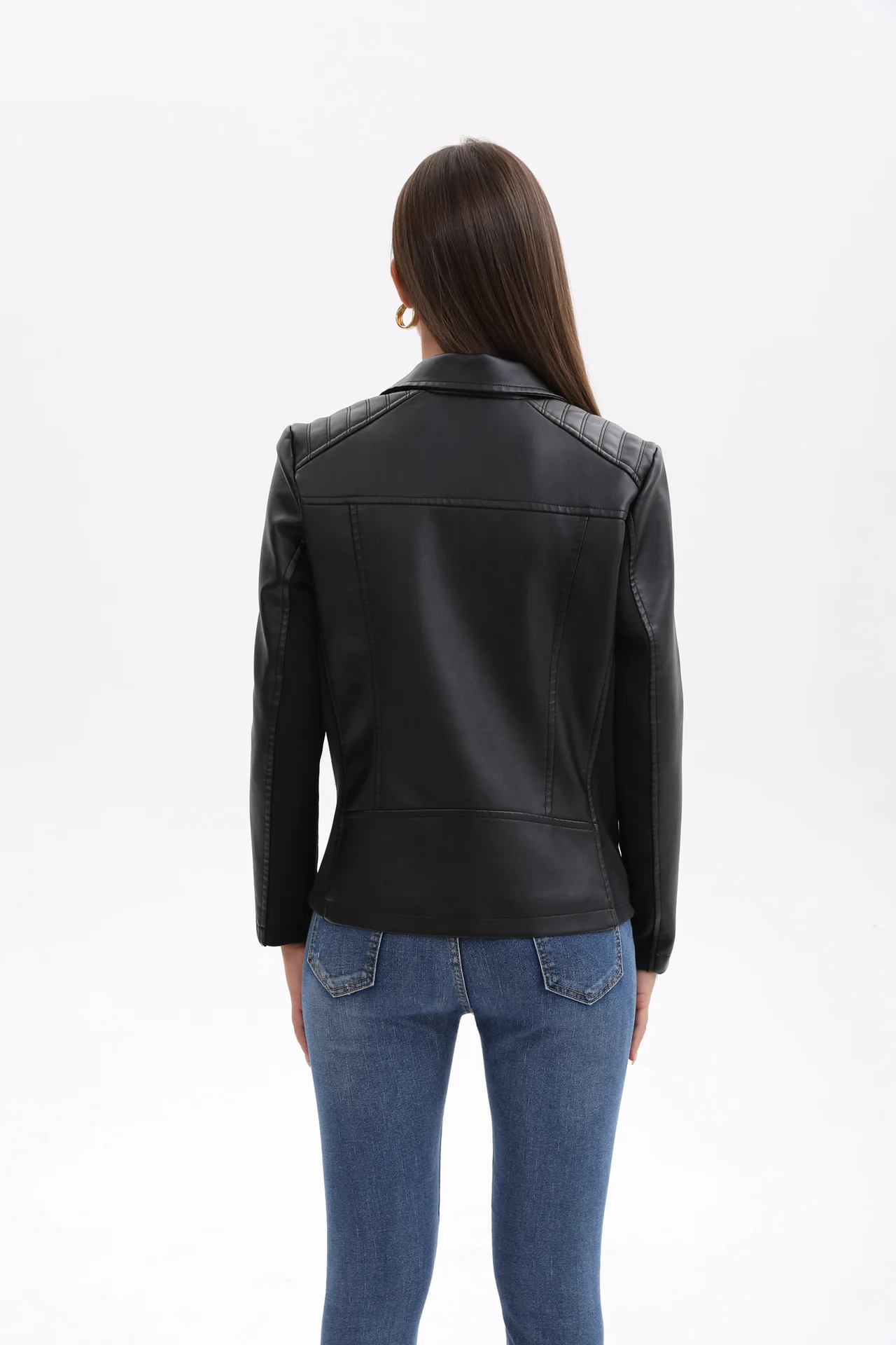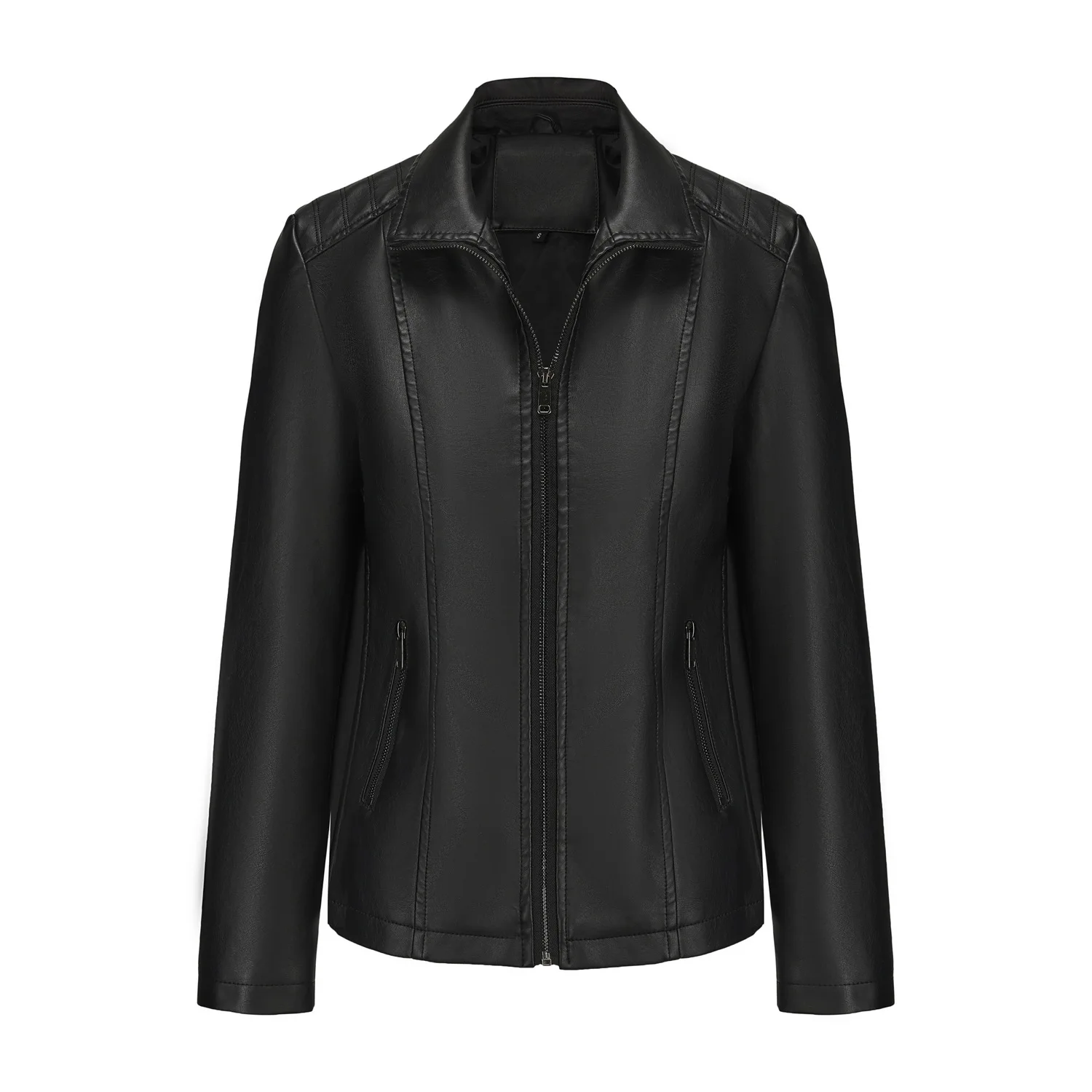 2025 Women’s Stylish Brown Faux Leather Jacket - Slim Fit, Trendy Moto Style with Zipper Detail PU Coat.