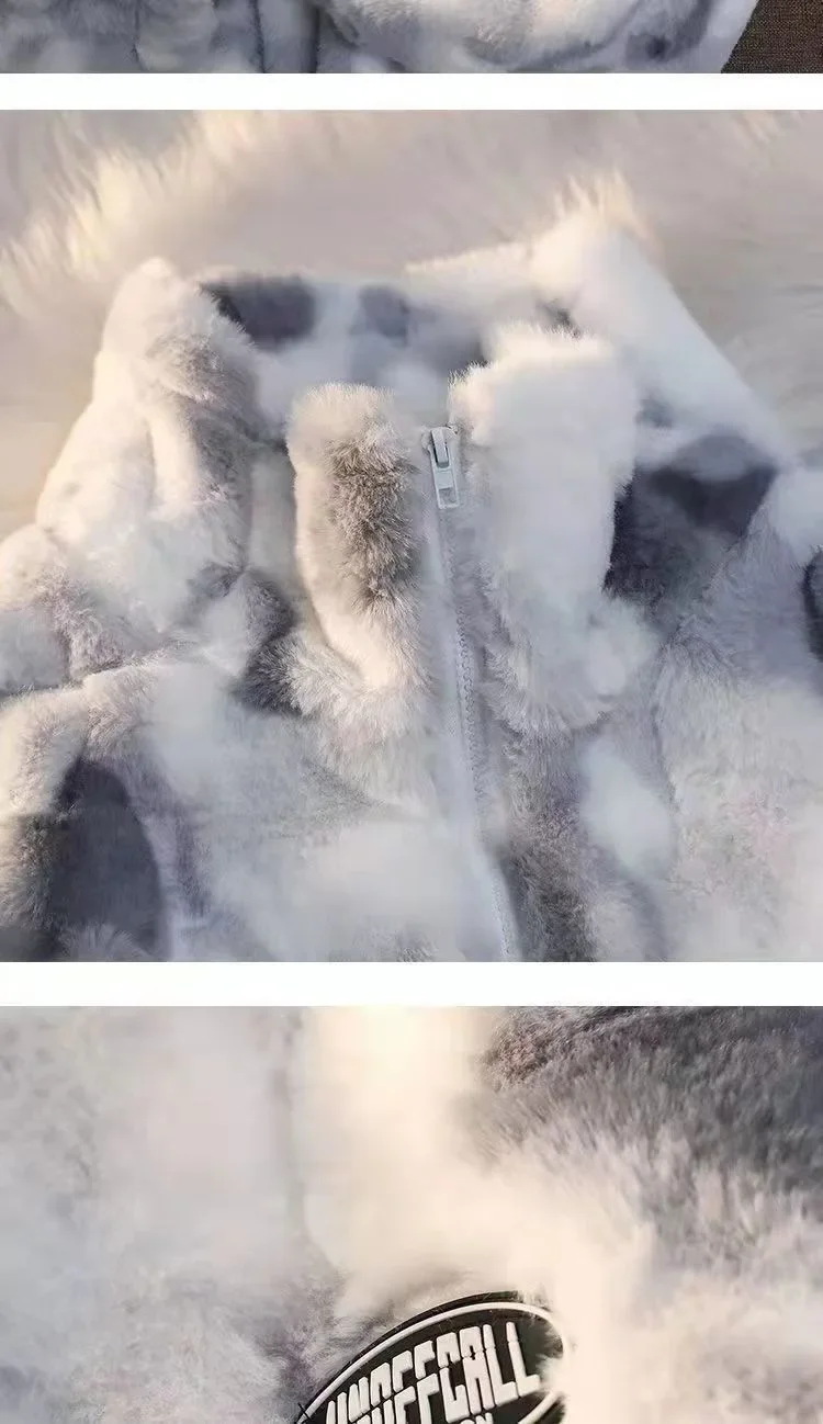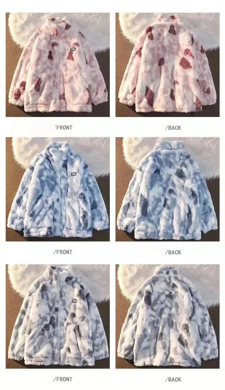 2025 Women's Tie Dye Lamb Fleece Jacket Autumn Winter Zipper Outerwear Warm Plush Harajuku Casual Loose Female Thick Coat