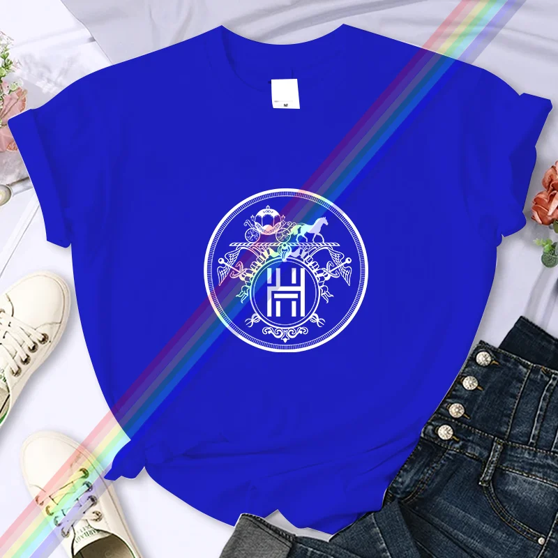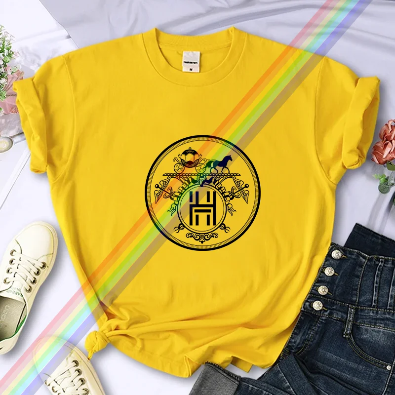 2025Luxury Brand High-Quality For Women's Summer Paris H Horse Printing T-shirt 100% Cotton Casual Oversized Y2k Sleeve O-neck