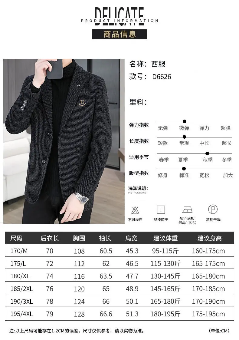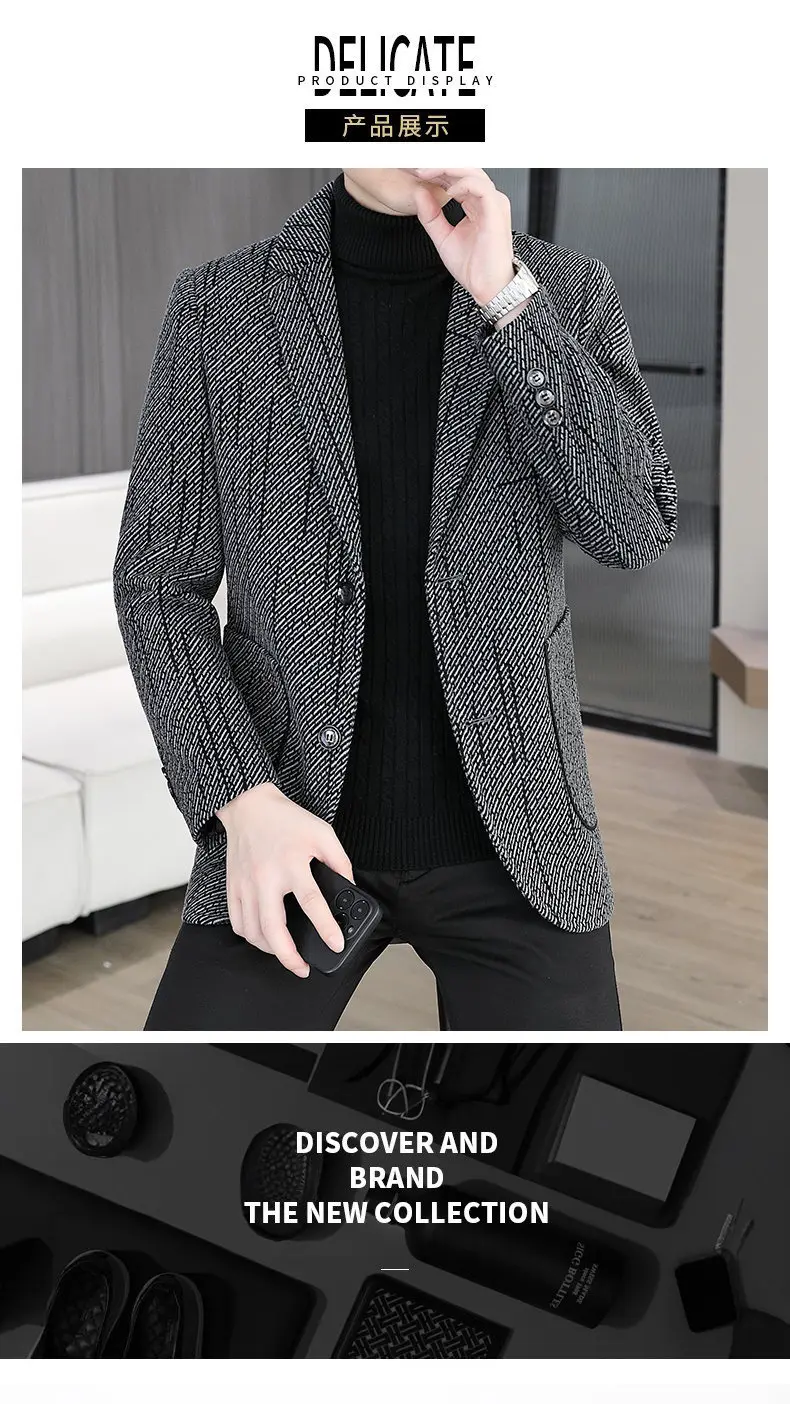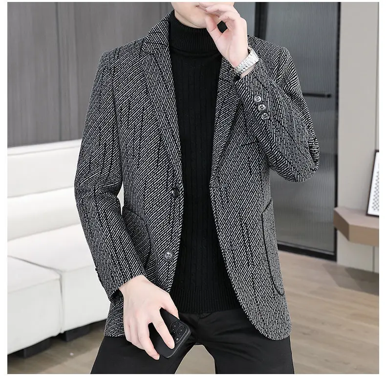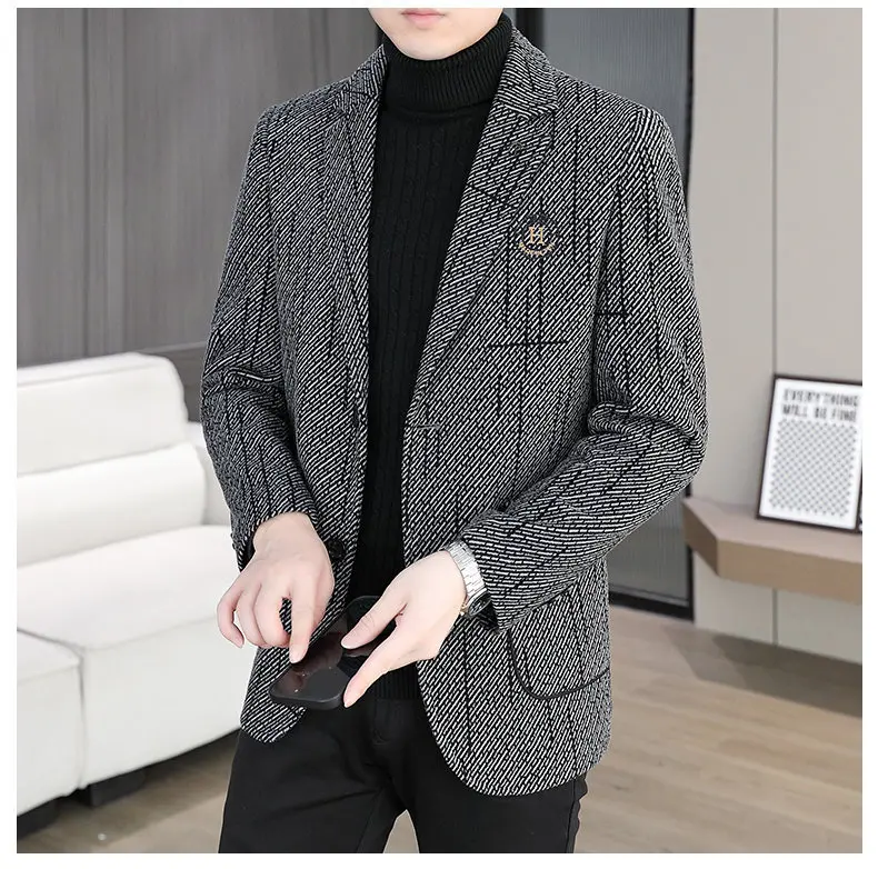 2026 Men's Striped Embroidered Casual Wool blazer