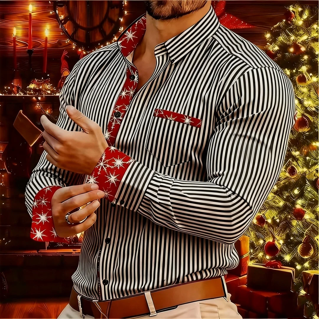2026 New Christmas Men's Shirt - Buttoned Casual Shirt - Long Sleeve Series - Embroidered Patchwork Shirt - Daily Casual Wear -