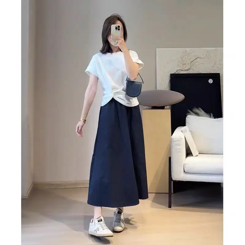 2026 Solid Color Big Size Half Skirt Women Leisure A- Line with Pocket Chinese Origin Simple Plus Size Mid Length Skirt