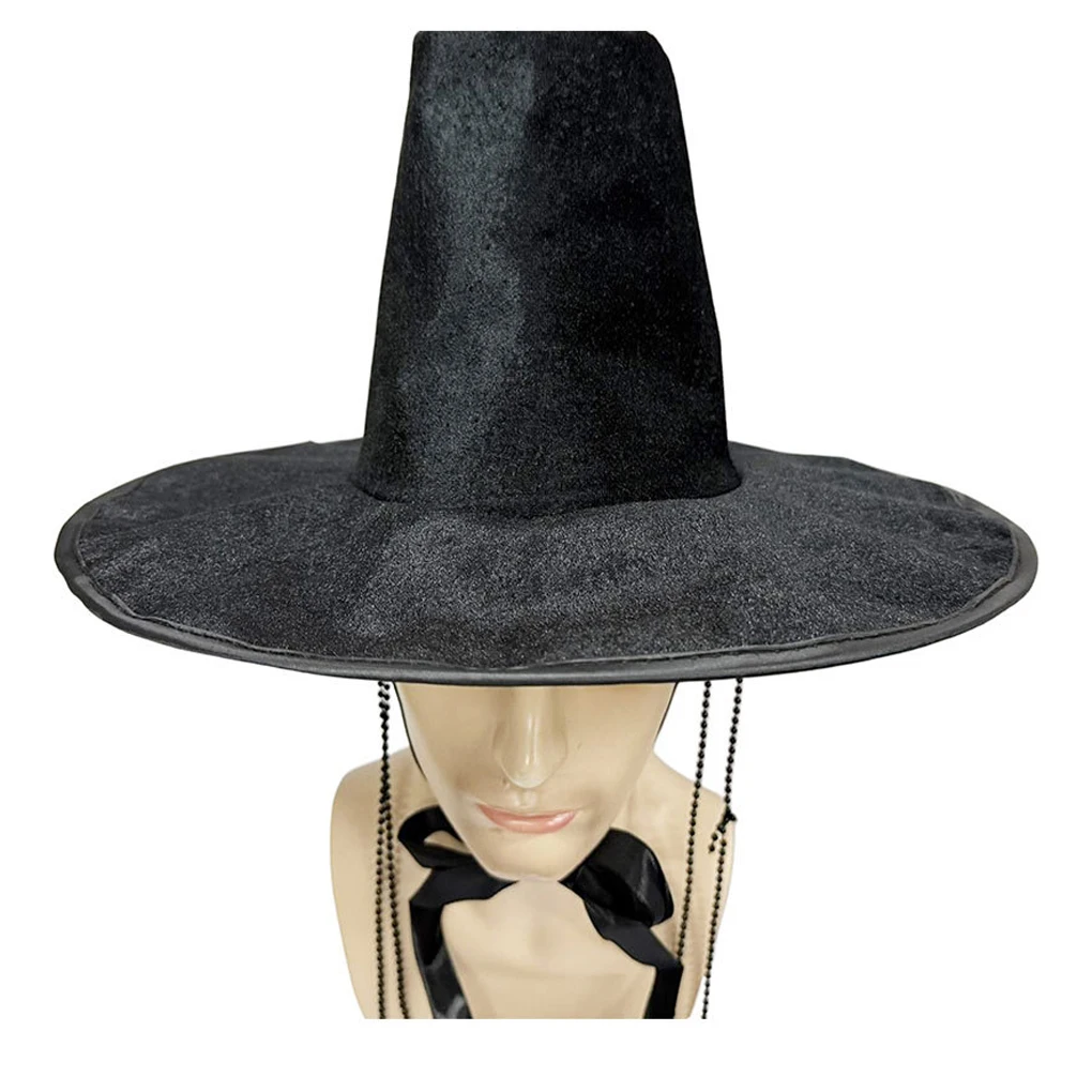 2028 Role-playing Costume Hat Traditional Ming Dynasty Korean Flat Topper Hat for Men Wide Brim Uv Protection Black Cap Stage
