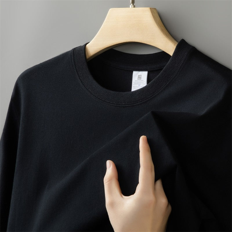 230g Men's Oversized Thick Round Neck T-shirt Summer Short Sleeved T-shirt Pure Cotton Solid Color Top Casual Versatile T-shirt
