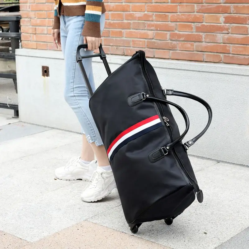 24inch Capacity Travel Trolley Luggage Storage Bag With Wheels Waterproof Pulley Portable Collapsible Expandable Fashion Clothes