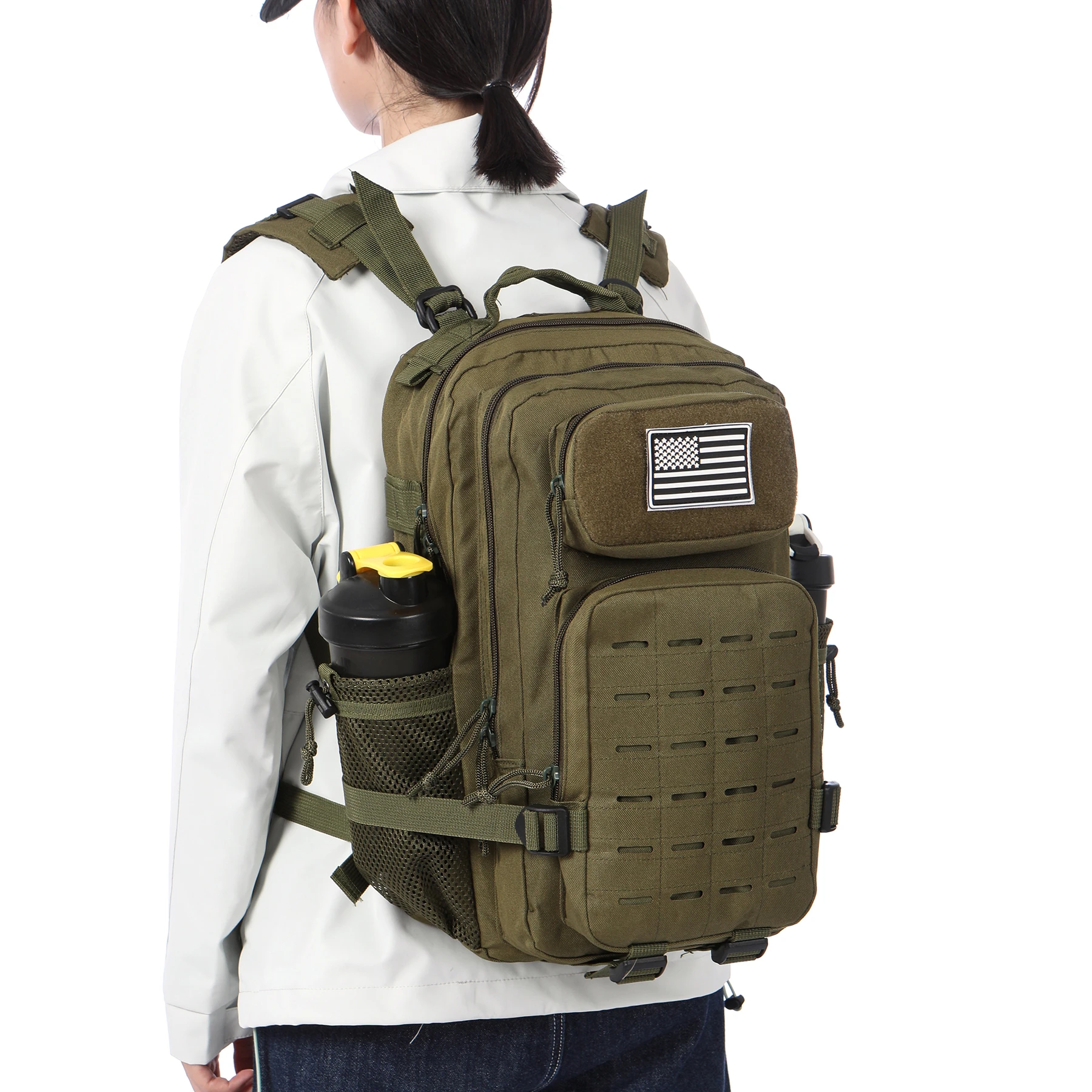 Tactical Backpack is designed for men who love adventure. Whether you're out hunting, hiking, camping, or hitting the gym, this MOLLE backpack has got your back. With multiple compartments and 2 specialized bottle holders, it offers efficient storage and easy access to your essentials.