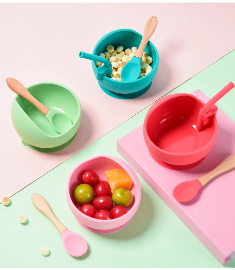 28Colors Baby Silicone Suction Bowls for Kids Waterproof Baby Feeding Tableware Spoon Children Dishes Kitchenware Infant Plates