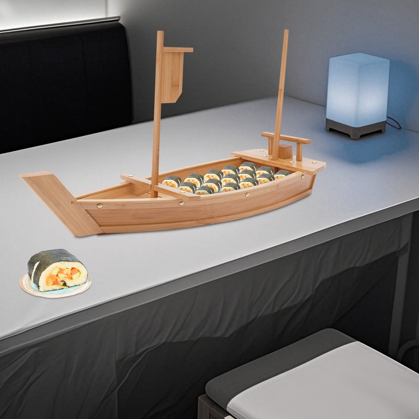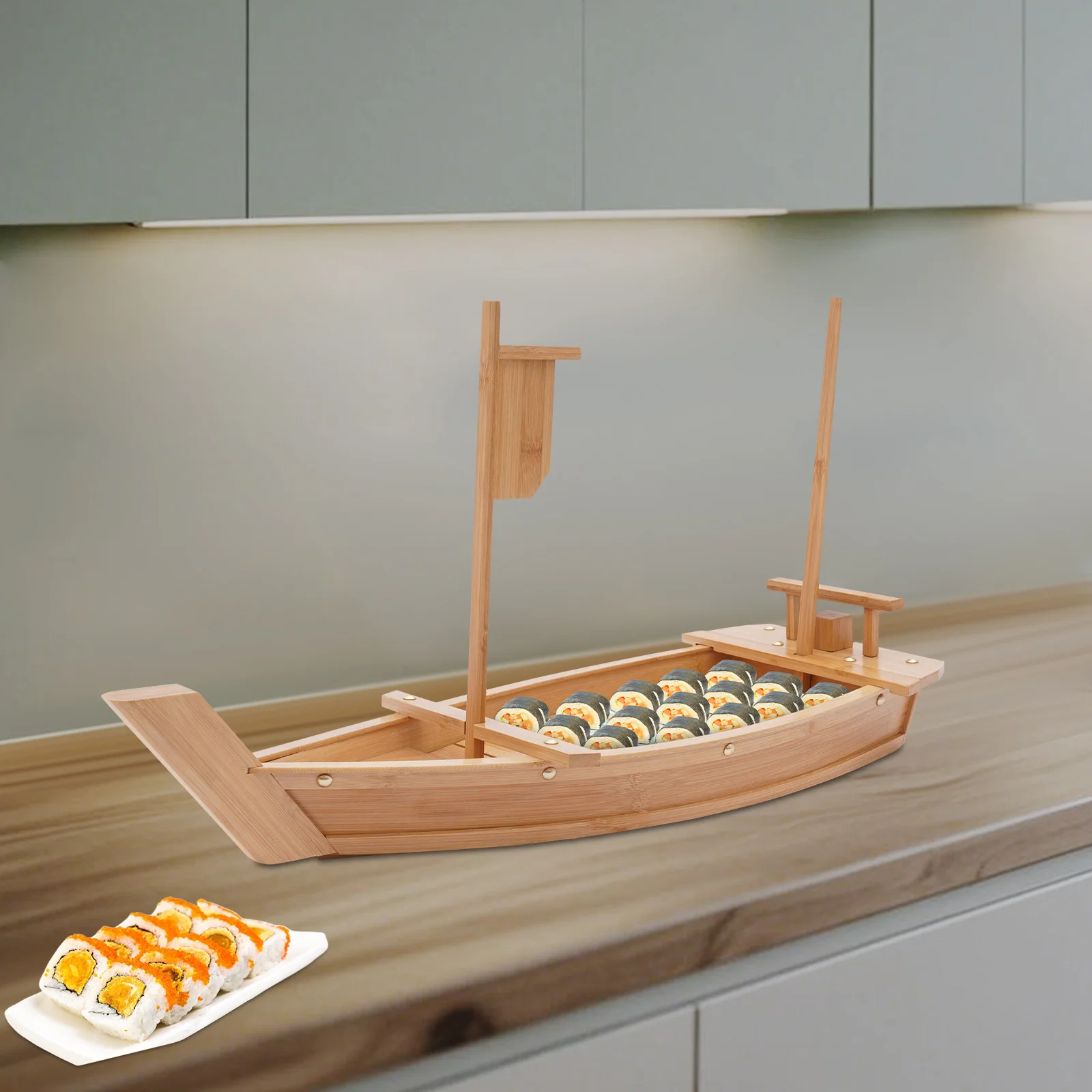 28in Bamboo Sushi Boat Serving Tray, 70cm Log Color Assembly Required Sushi Boat Serving Tray for Business or Personal Parties