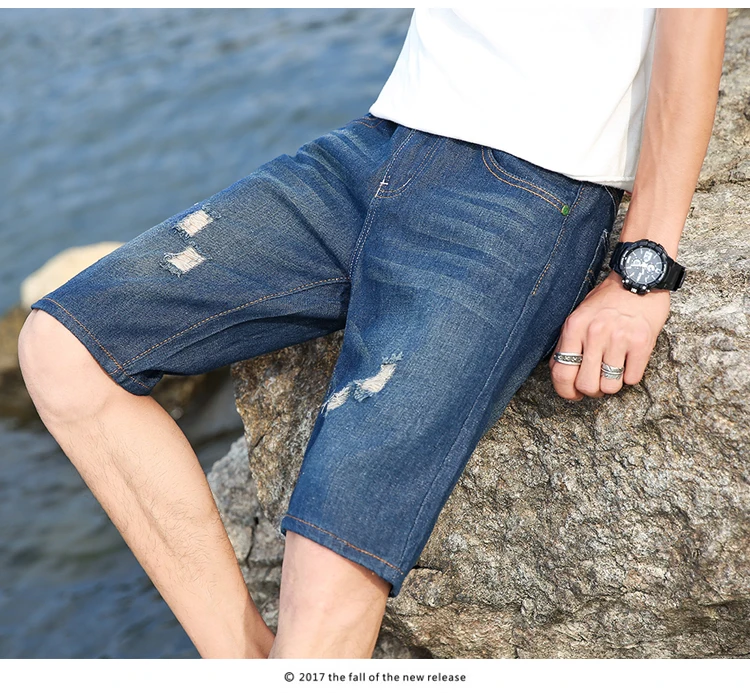 29-40 New Summer Men's Personalized Washable Perforated Denim Pants Large Casual Middle Pants