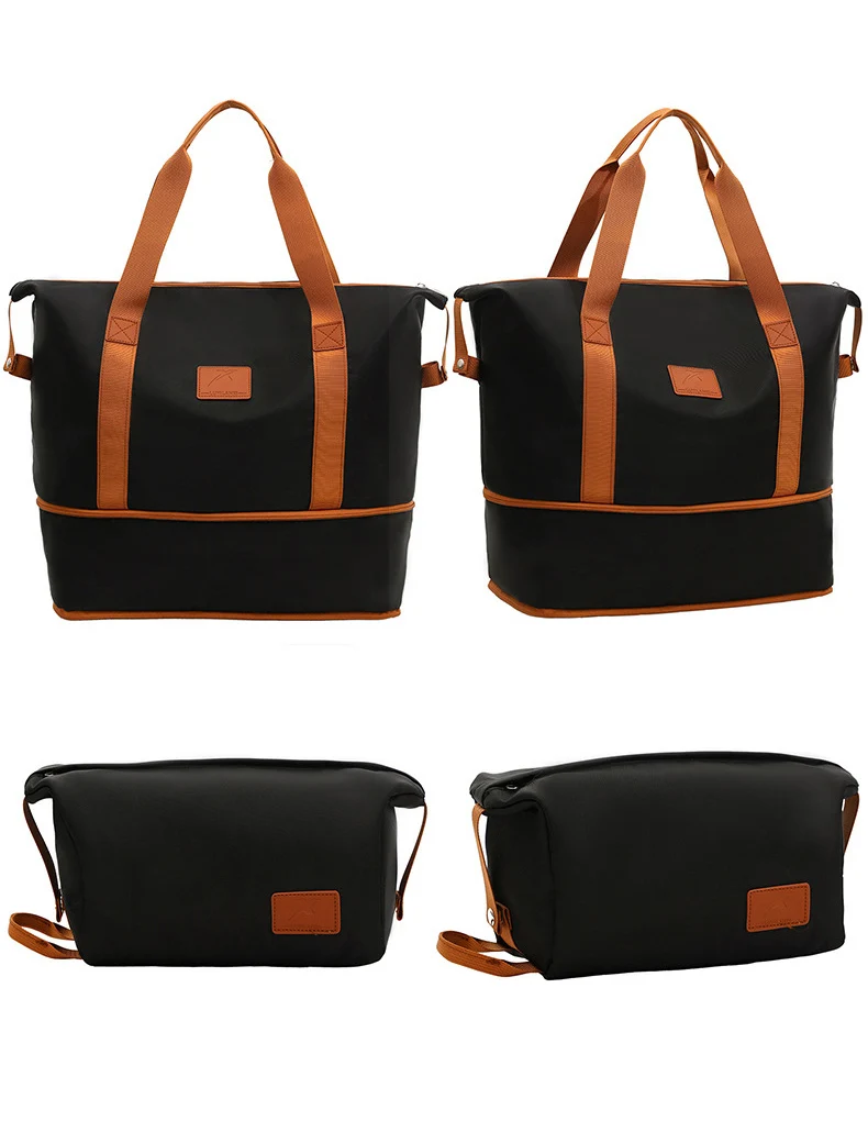 2Pc Multifunctional Travel Duffel Women Weekend Tote Bag Expandable Luggage Handbag Trip Carry On Pack Sports Gym Crossbody Bags