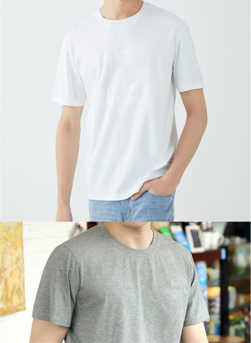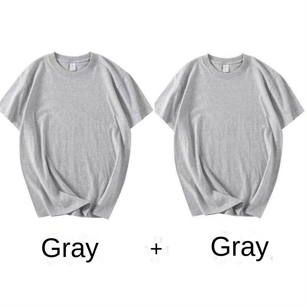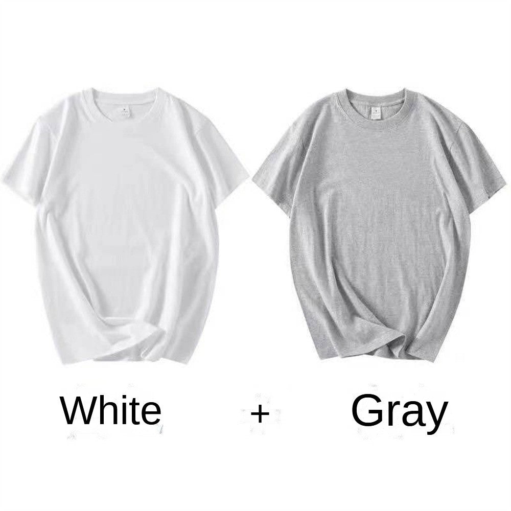 2PCS 100% Cotton Solid T Shirts Men's and Women's Short Sleeve White Tees Casual Breathable Loose Round Neck T-shirt Couple Tops