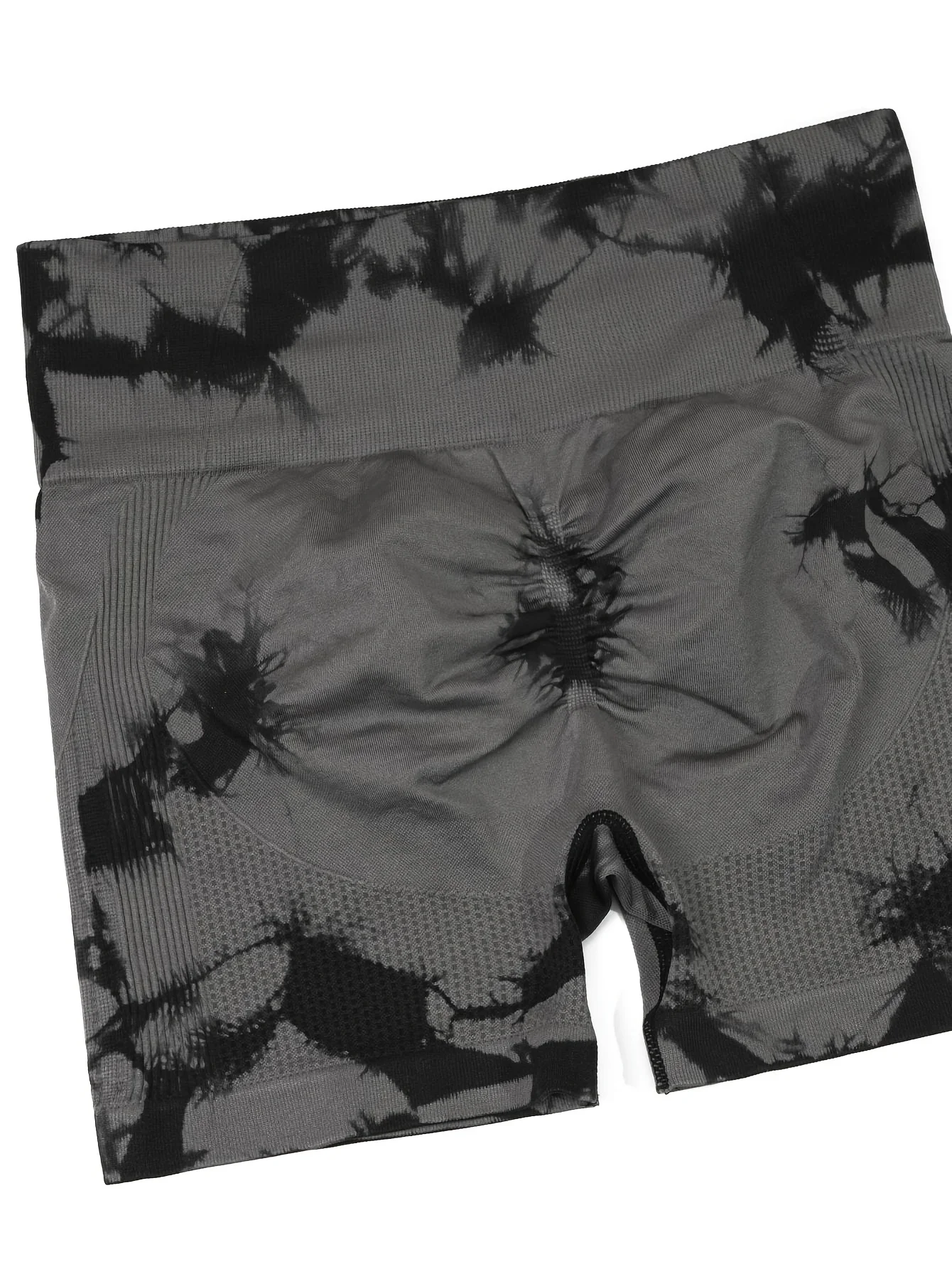 2pcs Women's High-Waist Tie-Dye Yoga Shorts - Seamless, Booty Lifting, Stretchy Nylon & Spandex Blend, Red & Grey