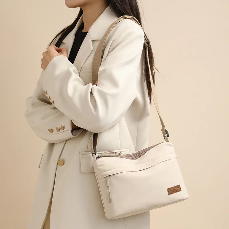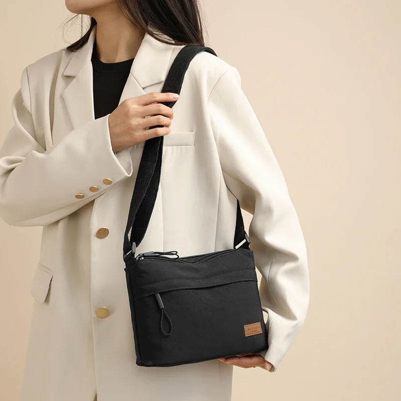 3 Main Pockets High Capacity Shoulder Crossbody Bag for Women Multi-pocket Purse Canvas Handbag Suitable for Mothers Shopping