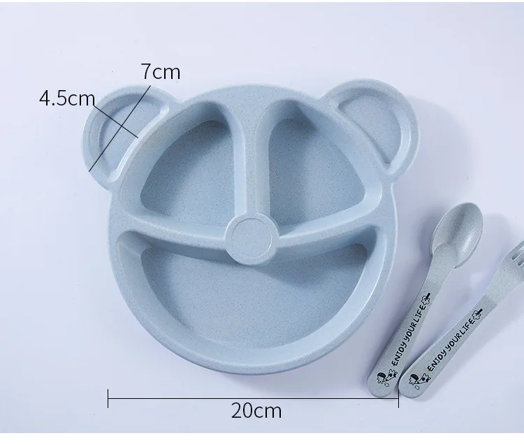 Wheat Straw Cartoon Children's Split Plate Dining Kindergarten Student Tableware Set 3-piece