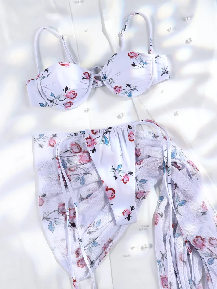 3 Pieces Bikini Set Sexy Push Up Bathing Suit Bandage Bikinis Low Waist Swimwear 2025 String Bikini Sets Women Summer swimsuit