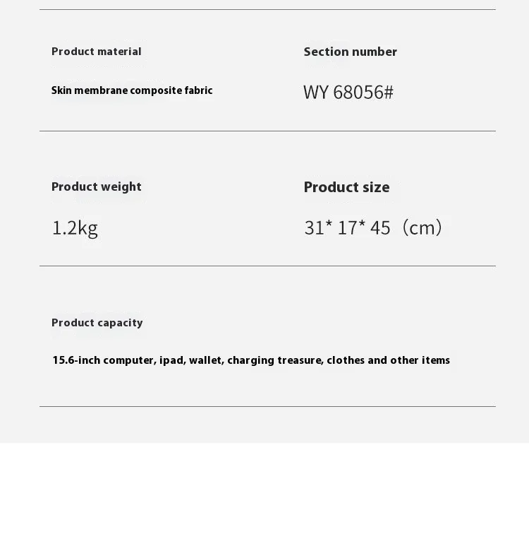 Sizes: 31(L)*17(W)*45(H)cm Weight:1.2kg