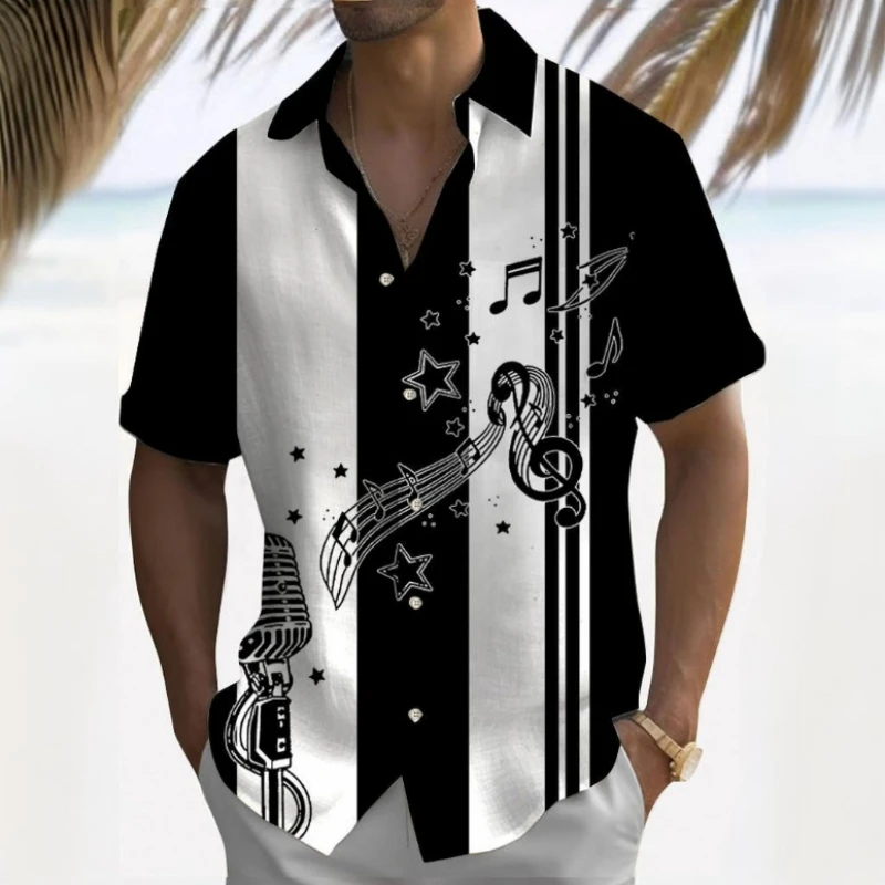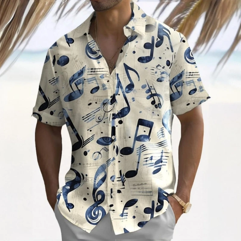 3d Music Symbol Print Hawaiian Shirts For Men Short Sleeve Shirt Summer Beach Casual Man Clothing Loose Oversized Men Shirt Tops