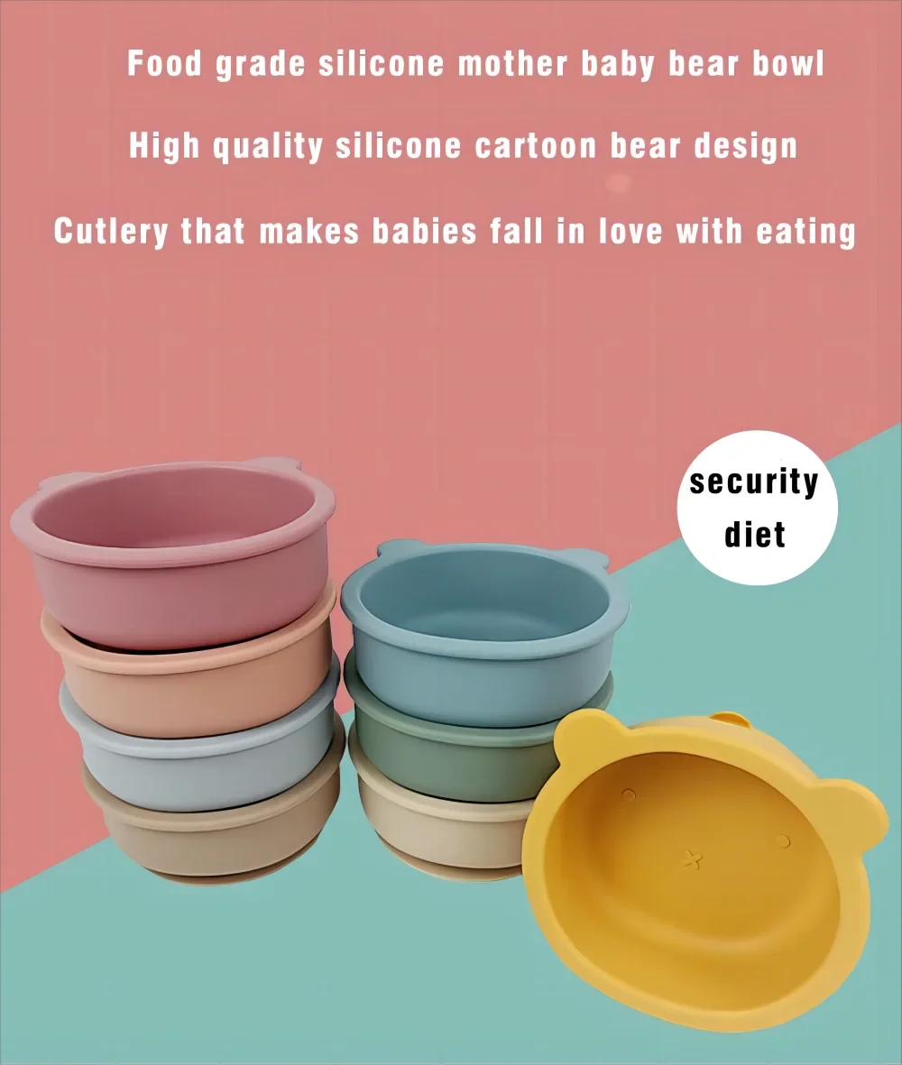 3pcs Baby Silicone Bowl Suction Cup Bowl Children's Tableware Complementary Bowl Children's Dinner Plate Silicone Tableware