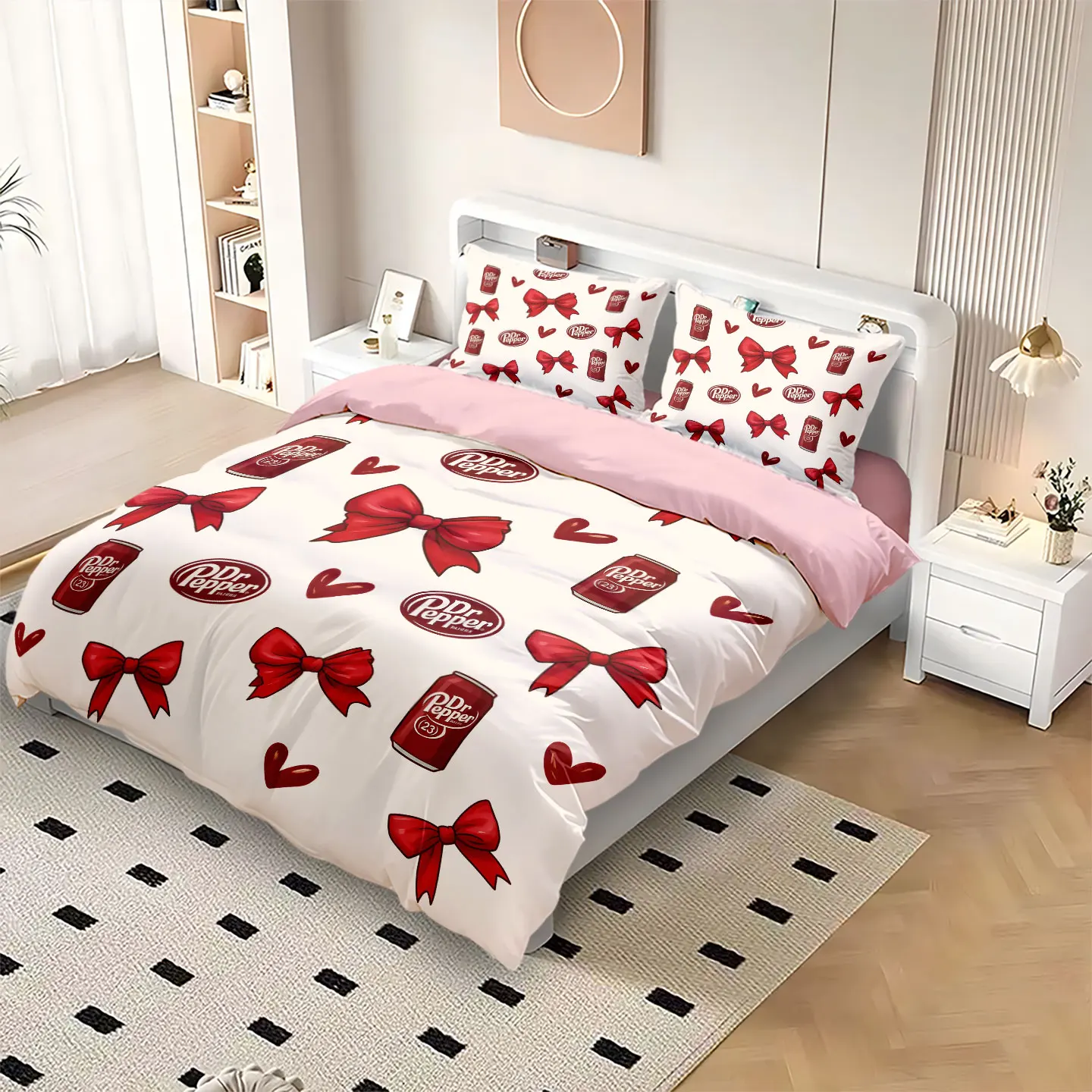 3pcs Pink Bow Printed Coreless Blanket Set, Multi Size Bedroom and Dormitory Bedding Decoration, Soft and Machine Washable