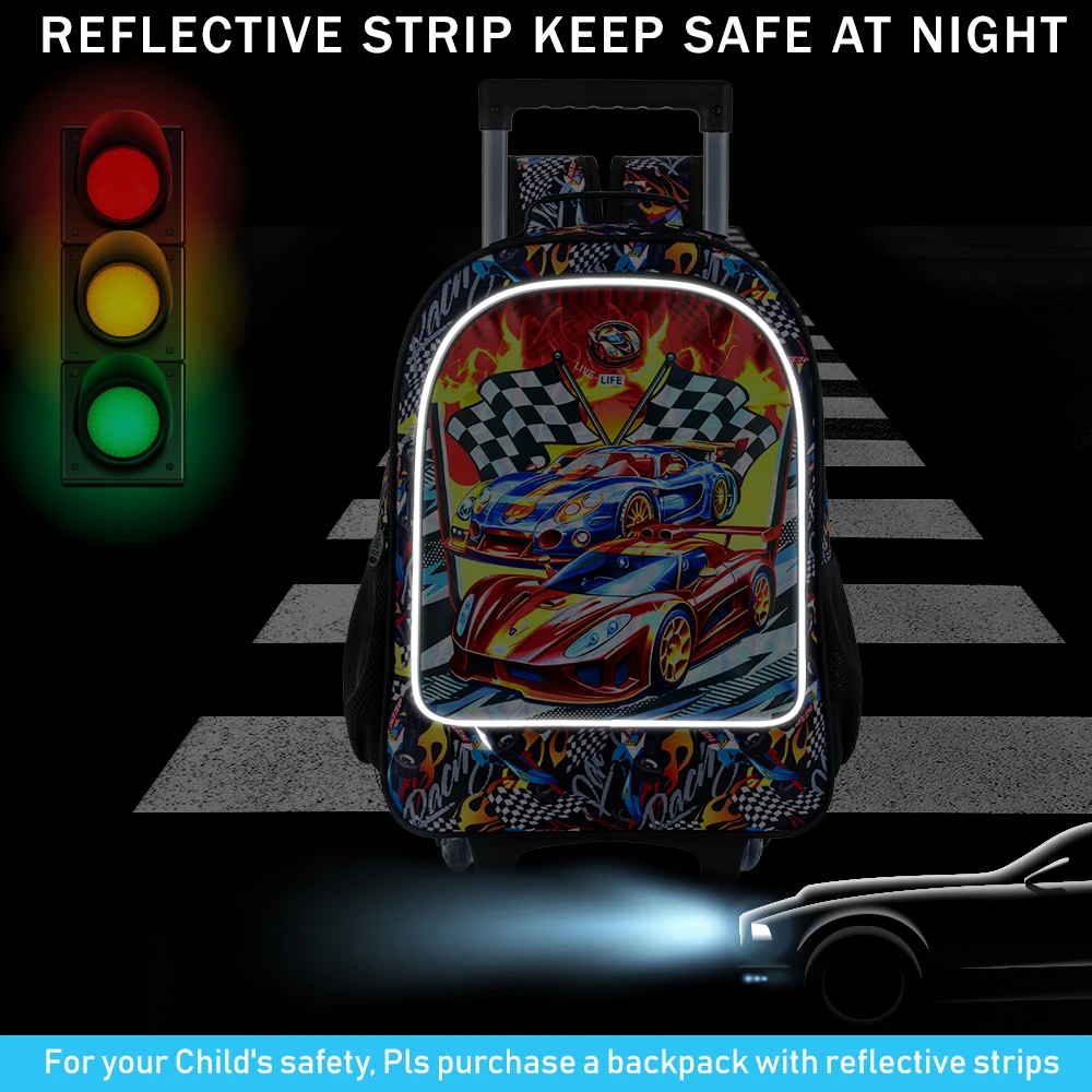 Novel Style: This rolling backpack is made of unique craftsmanship, so that the cool car print will show more colors under the light, more realistic and layered,recommended for every adventurous racing prince!