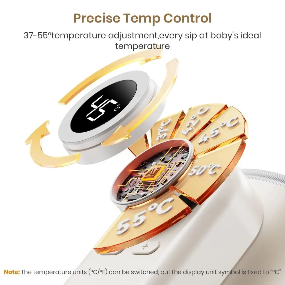 -Rechargeable and Portable: No need to always connect to a power source, It can be used as as going out, traveling, etc. ducing waiting time and helping you soothe your baby quickly, we don't need to worry about baby drinking milk.