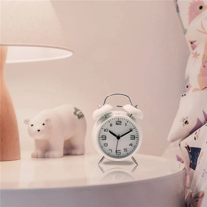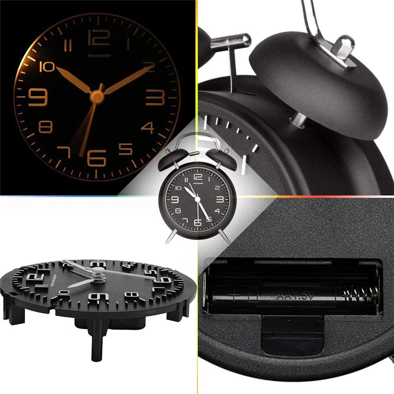 4 Inch Twin Bell Loud Alarm Clock Metal Frame 3D Dial with Backlight Battery Operate Desk Table Alarm Clock For Home and Office