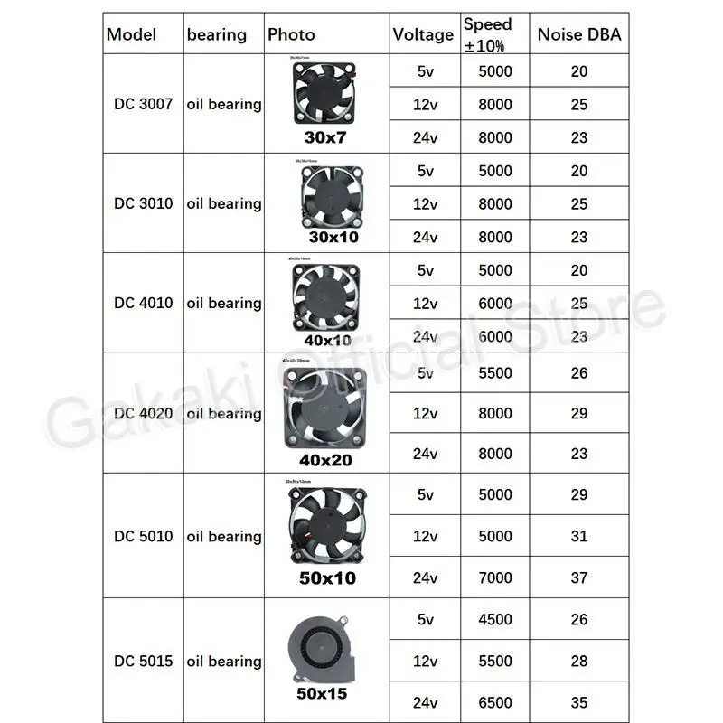 4010 12025 8010 30mm dc 5V 12V 24V Cooling Fan Brushless Motor Case Quiet 40MM 50MM 60MM 70MM 80MM 90MM 120MM for 3D print 2PIN