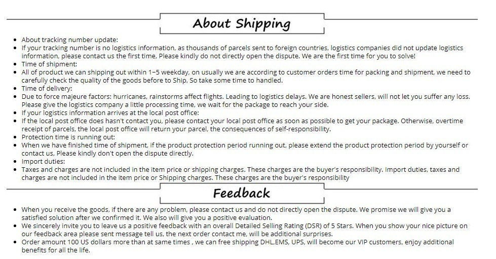 Note: Light reflection and different displays may cause the color of the item in the picture a little different from the real thing. The measurement allowed error is +/- 1-3cm.