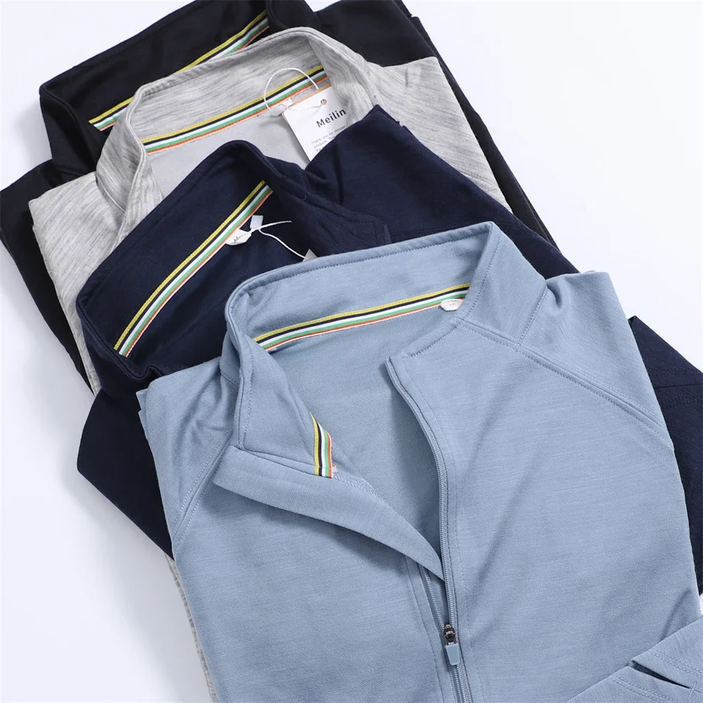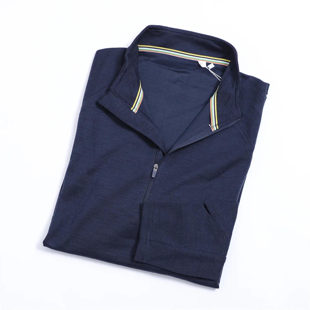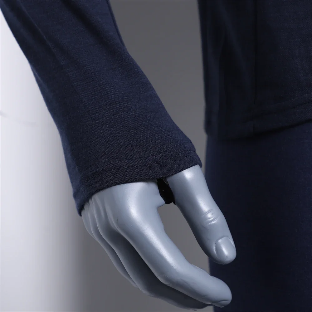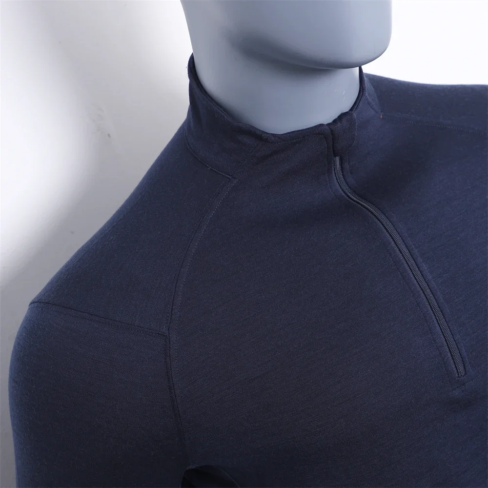 42% Merino Wool Base Layer Shirt Men 1/2 Zip Thermal Underwear Long Sleeve Shirts 210G Hiking Sports Breathable Wicking Moisture