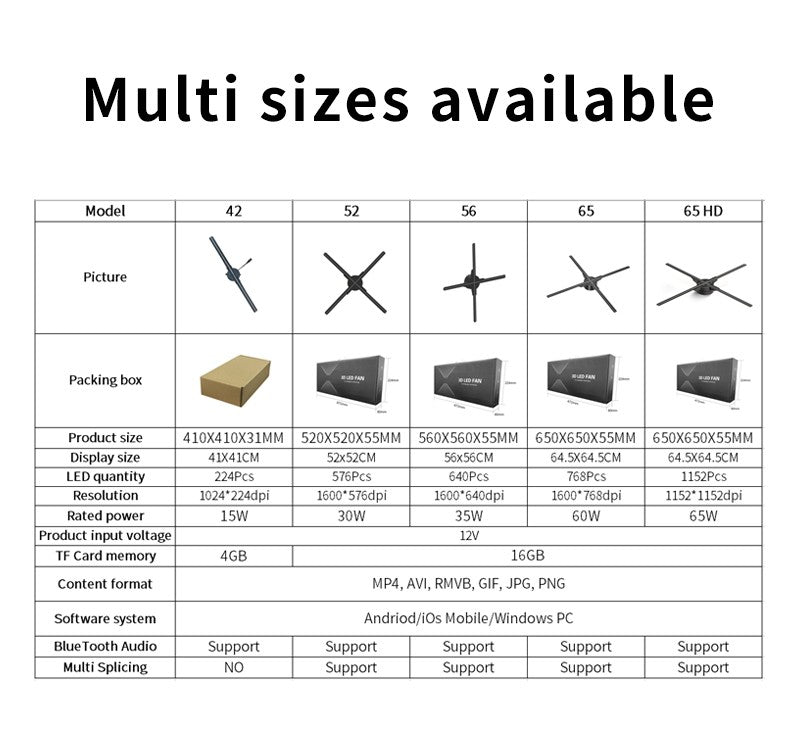 42CM/52CM/56CM/65CM 3D Holographic LED Fan Display for Advertising/Shop/Wedding High Brightness Custom Logo DIY Projector