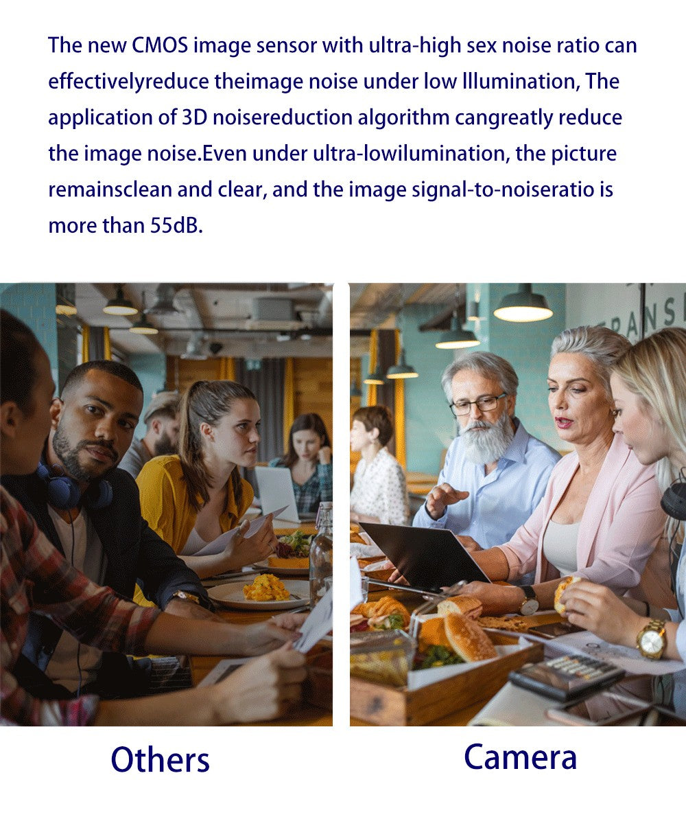 The high signal-to-noise ratio CMOS sensor, combined with advanced 2D and 3D noise reduction algorithms, effectively suppresses noise, guaranteeing clear and clean images even in low-light conditions.