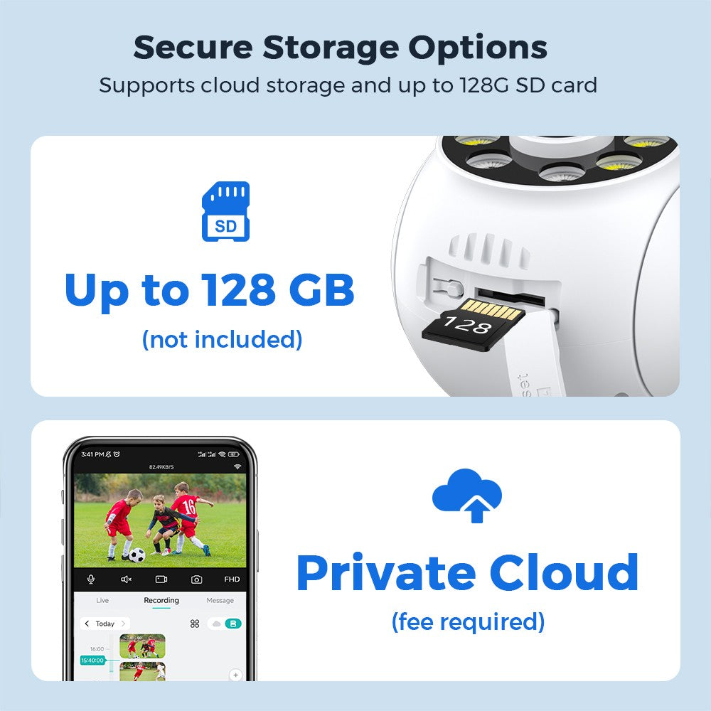 Support cloud storage and Max 128G SD card Record ,data security is more stable .