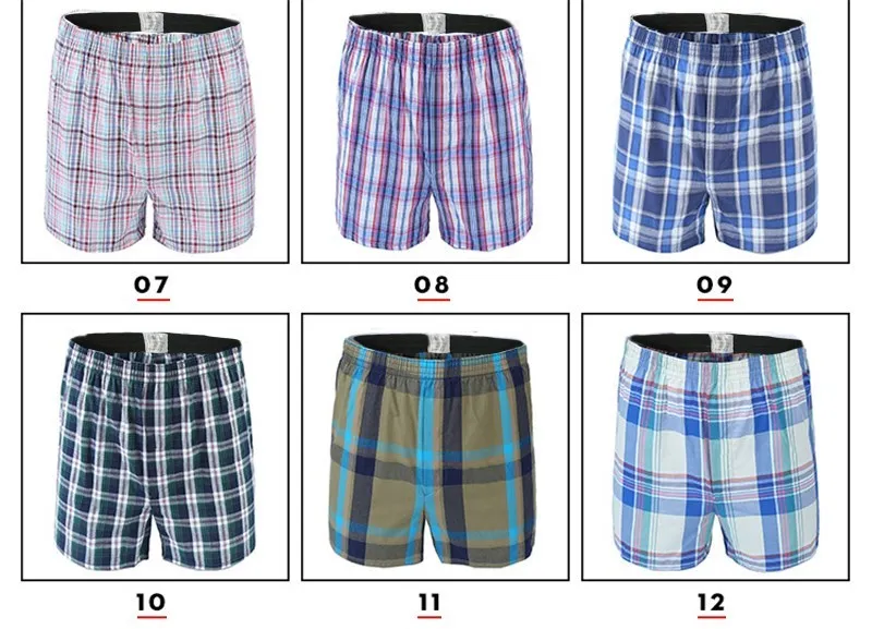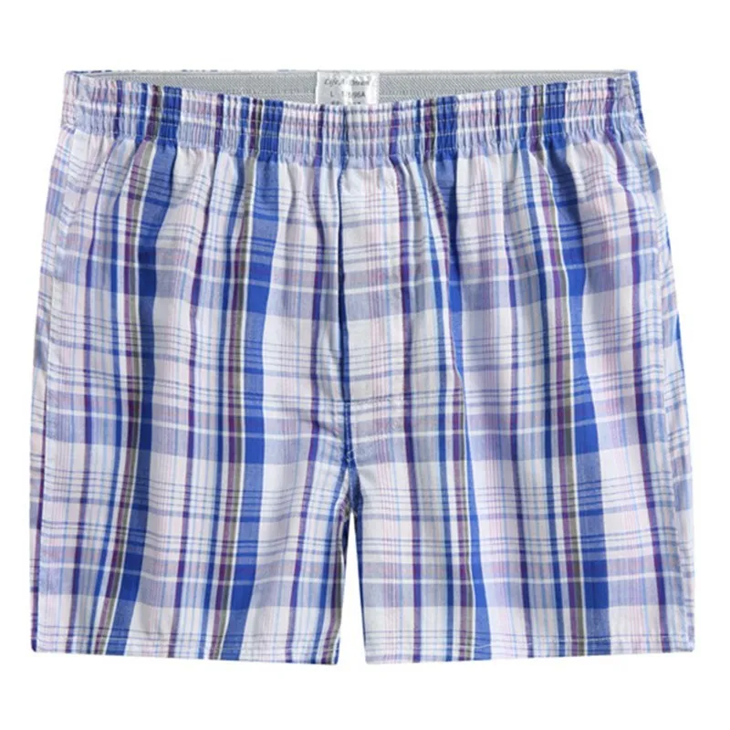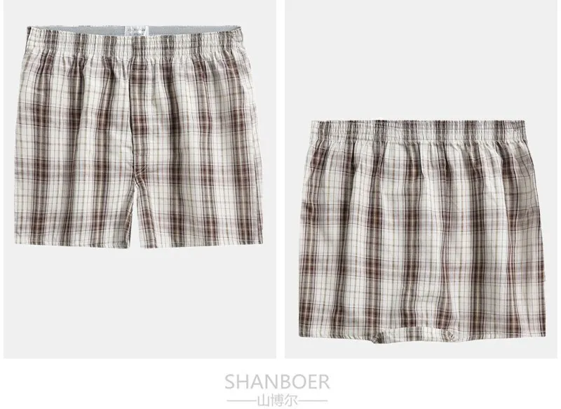 4Pcs Boxer Men Underwear Cotton Man Short Breathable Plaid Woven Shorts Boxer Male Underpants Plus Size Pajamas Sleep Bottoms