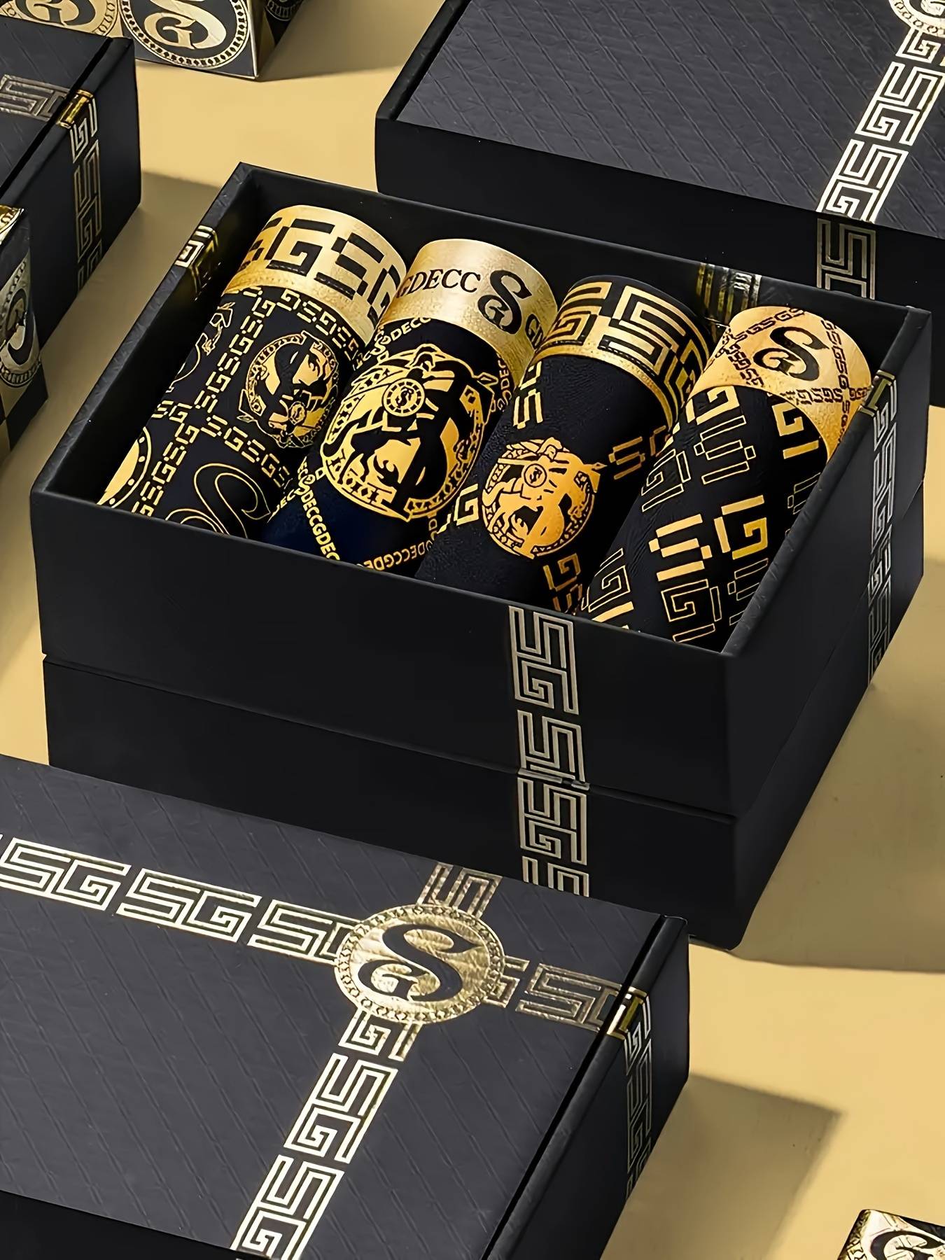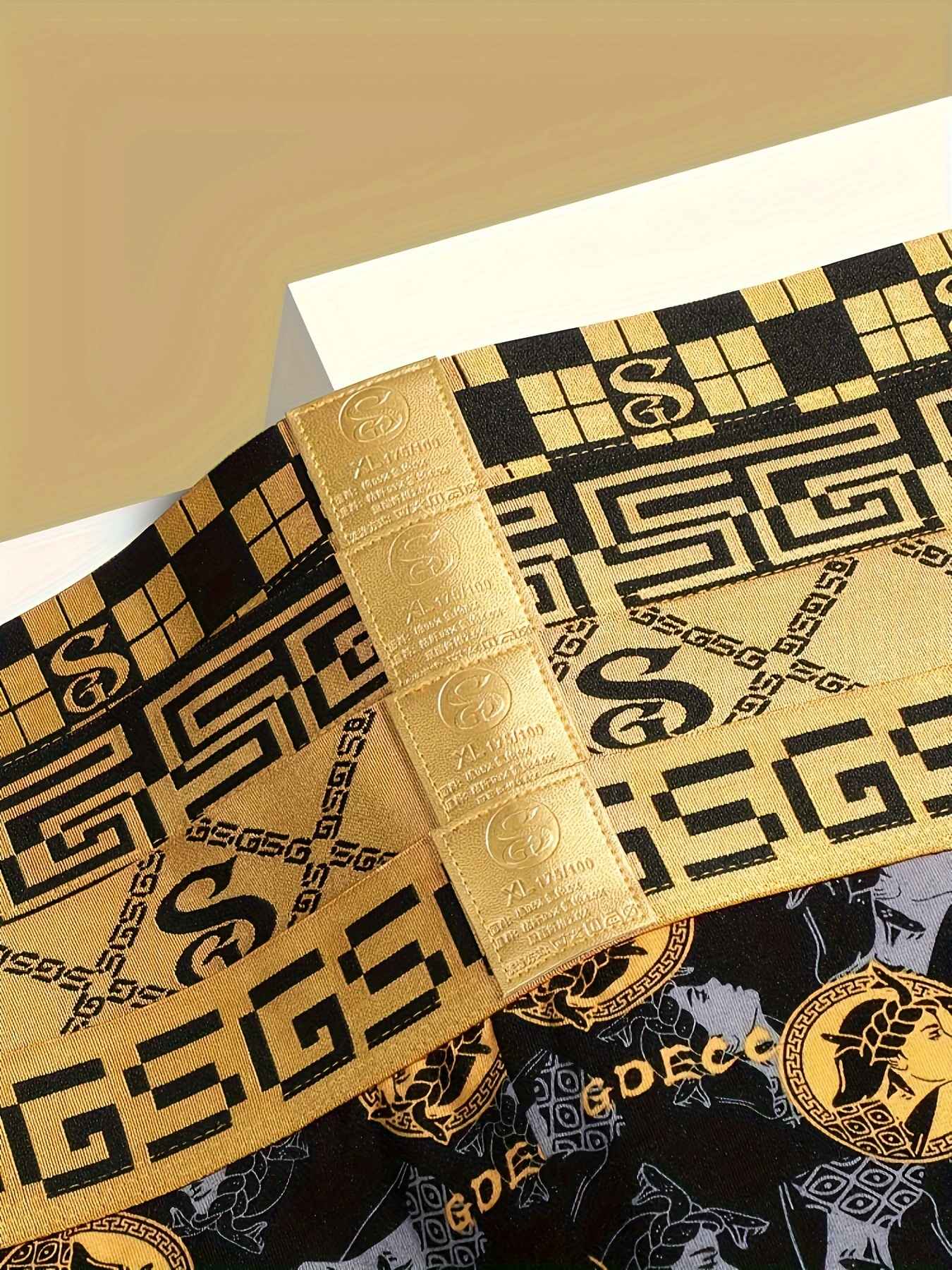 4pcs with Gift Boxed Men's Underwear Boxer Briefs, Ice Silk Trunks Calzoncillos Underpants, Wicking Breathable Luxury Black Gold