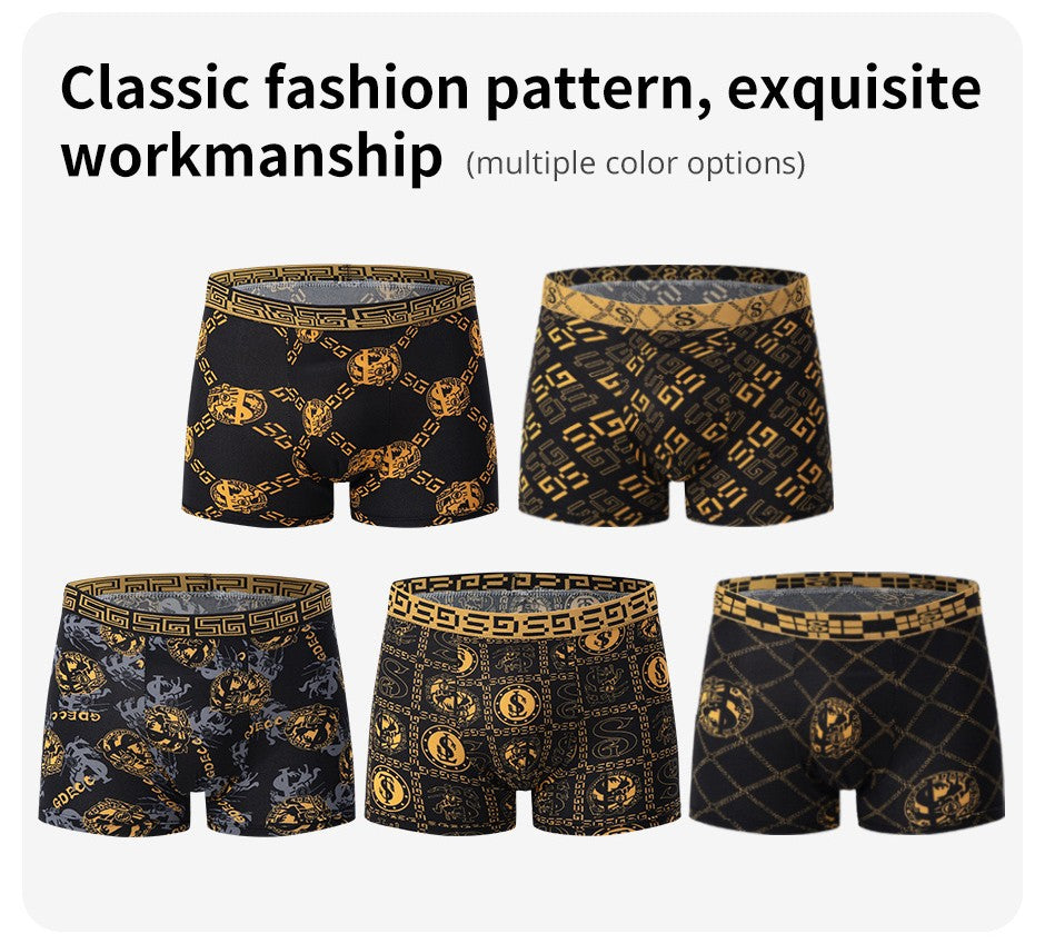 5 /10 Pack Men's Black Gold Printed Boxer Underwear Comfortable And Versatile Plus Size Sexy Young Men's Leisure Sports Beach sh