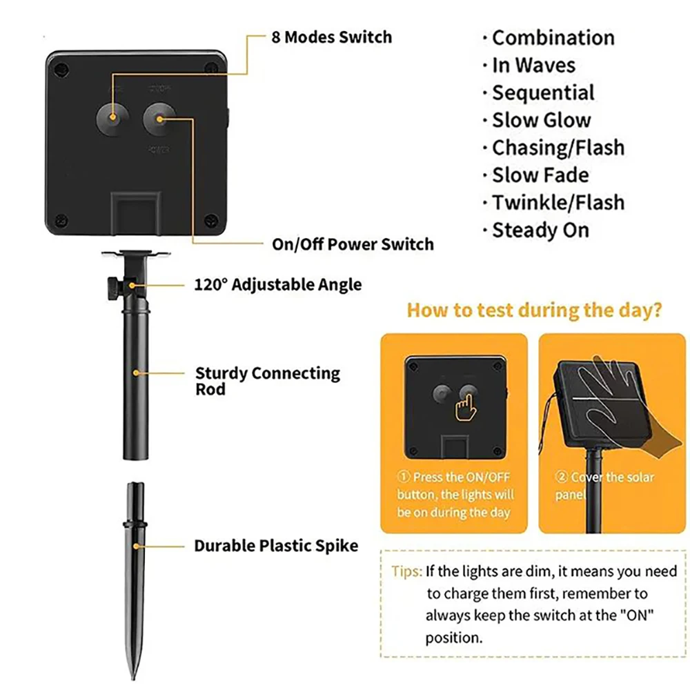5/7/12M 8 Modes Solar String LED Fairy Lights Garland Outdoor Solar Powered Waterproof Lamps Wedding Christmas Home Garden Decor