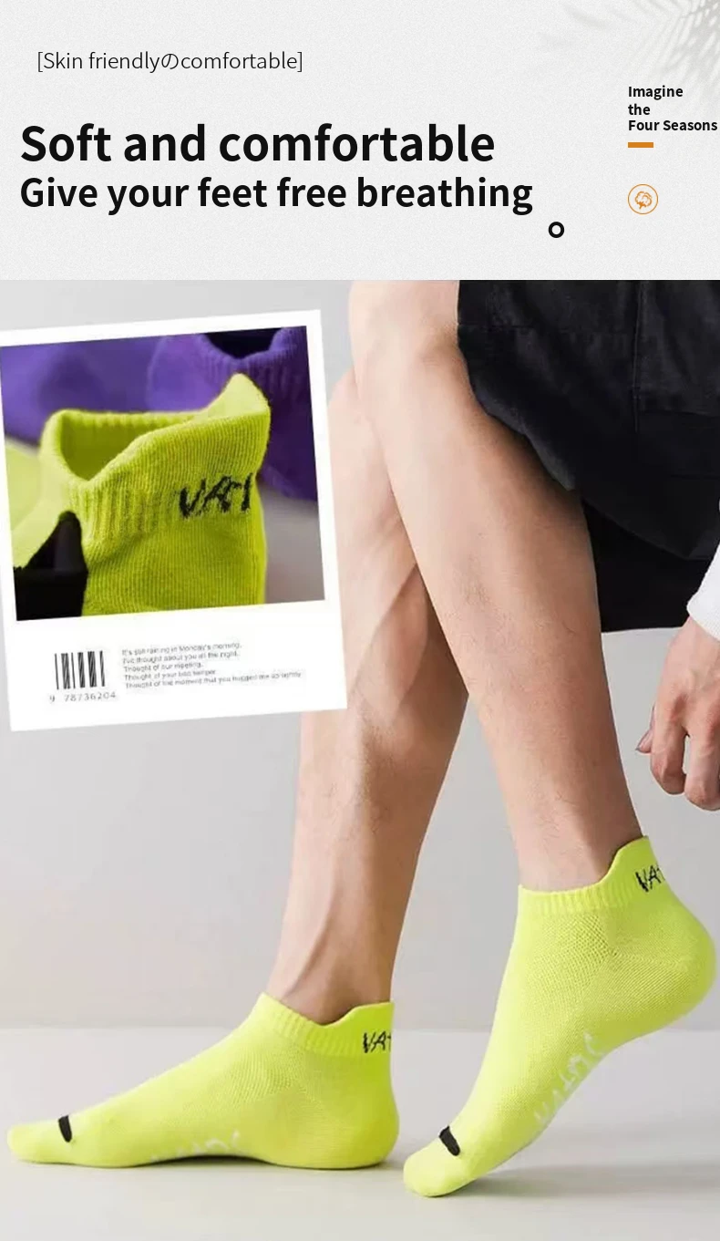 5 Pairs Men Bright Colored Ankle Socks Breathability Fashionable Casual Street Style Deodorizing Invisible Travel Running Socks